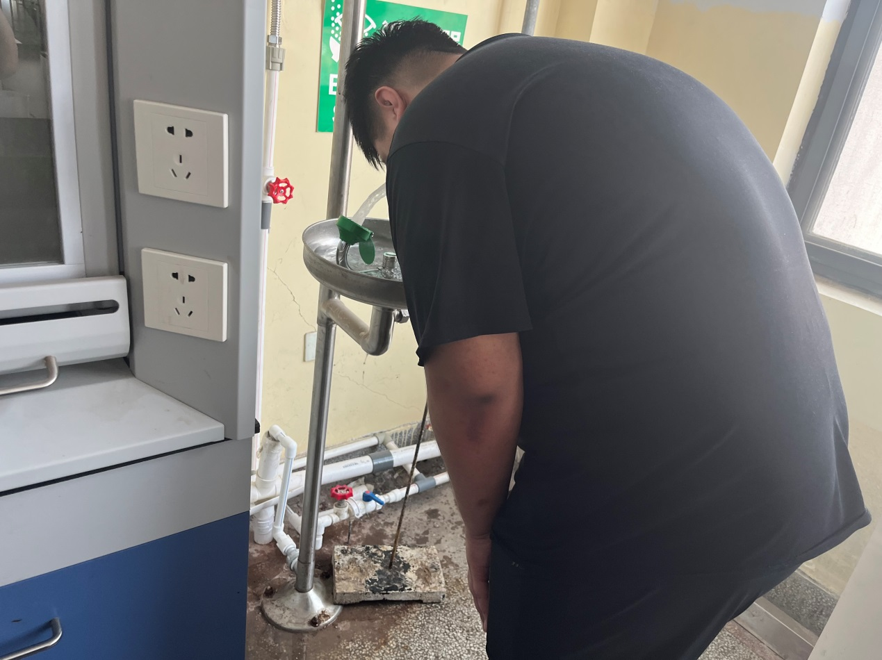 水火无情。无情的灾害不仅残害人类的生命,更是对人们的精神造成巨大的伤害。为了进一步加强实验室安全工作,提高师生应对突发事件的应急处置能力,5月25日,化学工程学院“实验室危险化学品洒漏着火及眼部灼伤事故应急演练”活动在D楼507实验室成功举行。