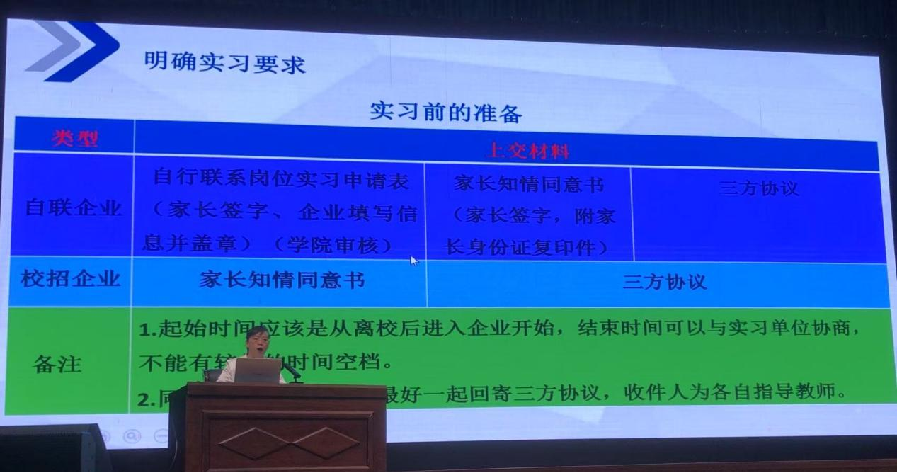 柴凤兰副院长详细介绍了2023级实习指导教师团队及岗位实习的具体要求。她指出,学院为每位学生配备了经验丰富的指导教师,将全程提供专业化的指导与支持。同时,她要求同学们严格遵守实习单位的规章制度,以高度的责任感和使命感完成实习任务,展现化学工程学院学子的优秀风采。