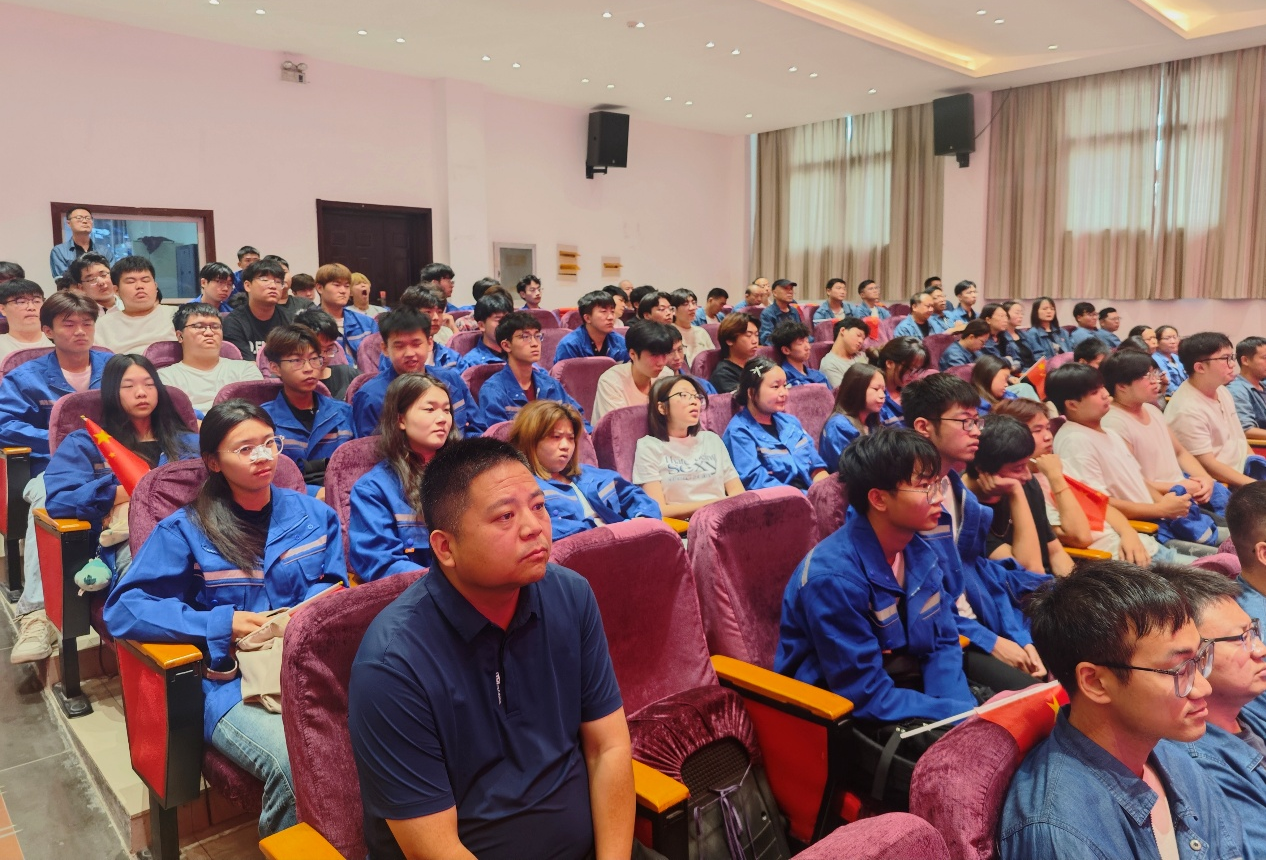 57名学生本学期开学便来到龙宇煤化工有限公司,开启了第二学年的企业学习之旅。纪念大会当天,礼堂内气氛热烈,大家怀着崇敬与激动的心情,共同见证这一庄严时刻。