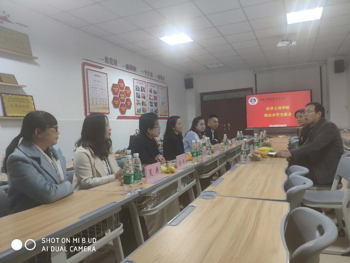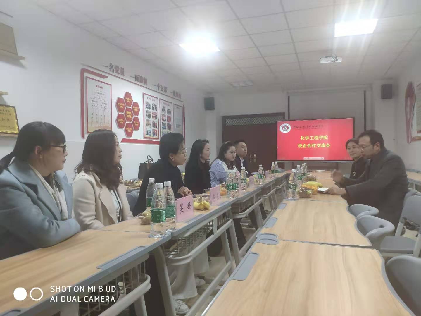 2020年11月11日,化学工程学院校企合作交流会圆满召开,安徽思妍电子商务有限公司、采真堂(河南)医药科技开发有限公司、郑州西蒙妮尔化妆品有限公司、河南省浦康好女人生物科技有限公司、河南昊典商贸有限公司、上海惠润生物科技有限公司共计6家企业代表参加了此次交流。本次交流会的主题是;加强校企合作,深化产教融合。交流会的目的主要是搭建竞赛平台、加强校企交流,同时进一步了解企业的用人需要,为后期的校企合作奠定基础。本次交流会由化学工程学院院长朱冰主持。