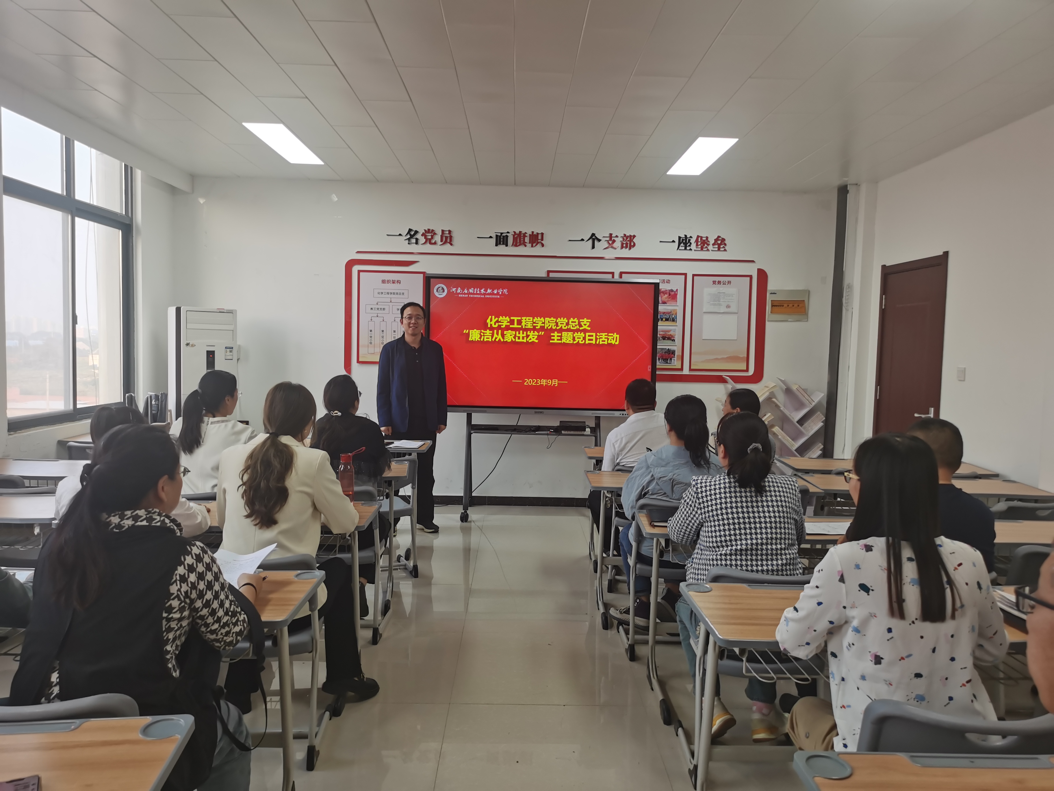 2023年9月21日,化学工程学院党总支在A512党员活动室开展“廉洁从家出发”主题党日活动,党员教师参加了会议。