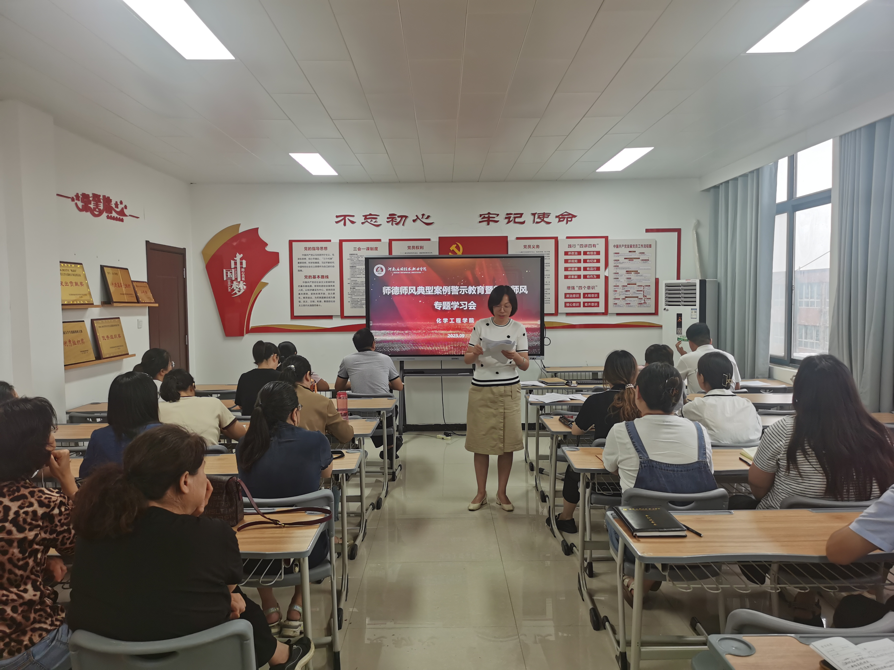 为进一步引导教师涵养师德师风,营造廉洁从教、廉洁育人、廉洁修身、风清气正的育人环境,2023年9月12日,化学工程学院召开违反师德师风典型案例警示教育专题会,全体教职工参加了会议,会议由党总支书记陈永惠主持。