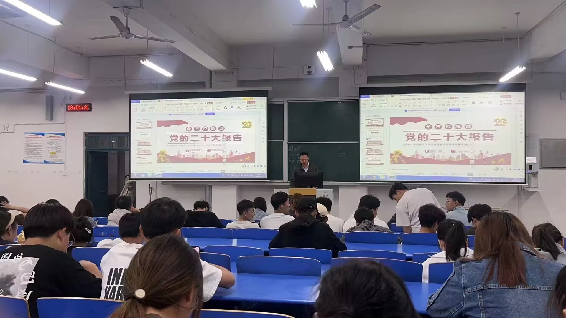 2023年5月9日,化学工程学院院长朱冰在B102上了一堂“学习贯彻党的二十大精神”专题党课,2022级入党积极分子参加了学习。