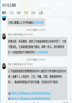 新冠肺炎疫情来势汹汹。“不论假期,不论身份,只要学生在哪里,我们就在哪里。”这是化学工程学院全体教师面对疫情,积极行动的真实写照。