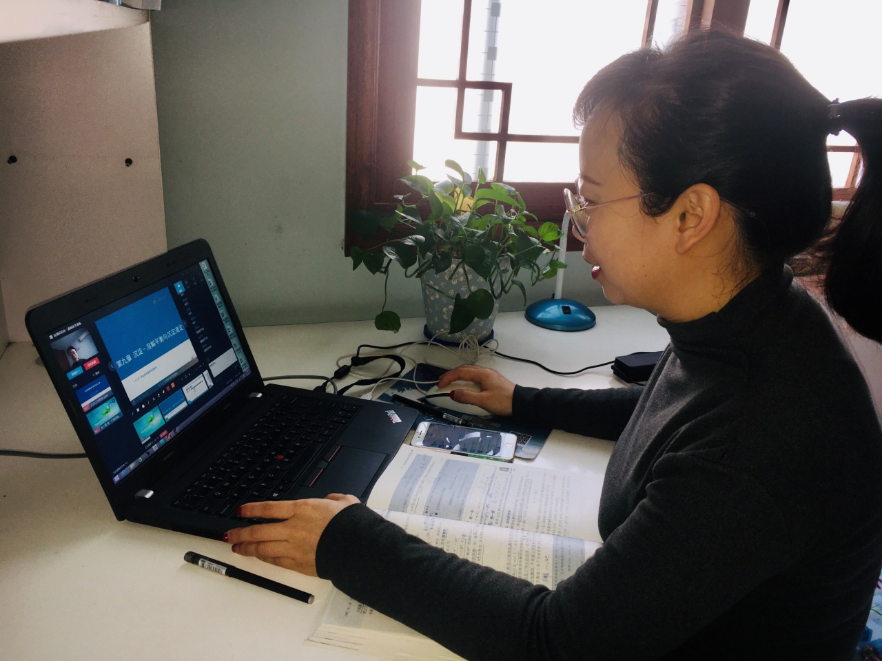 图4 学院教师预演网络教学和网络教学资料准备照片