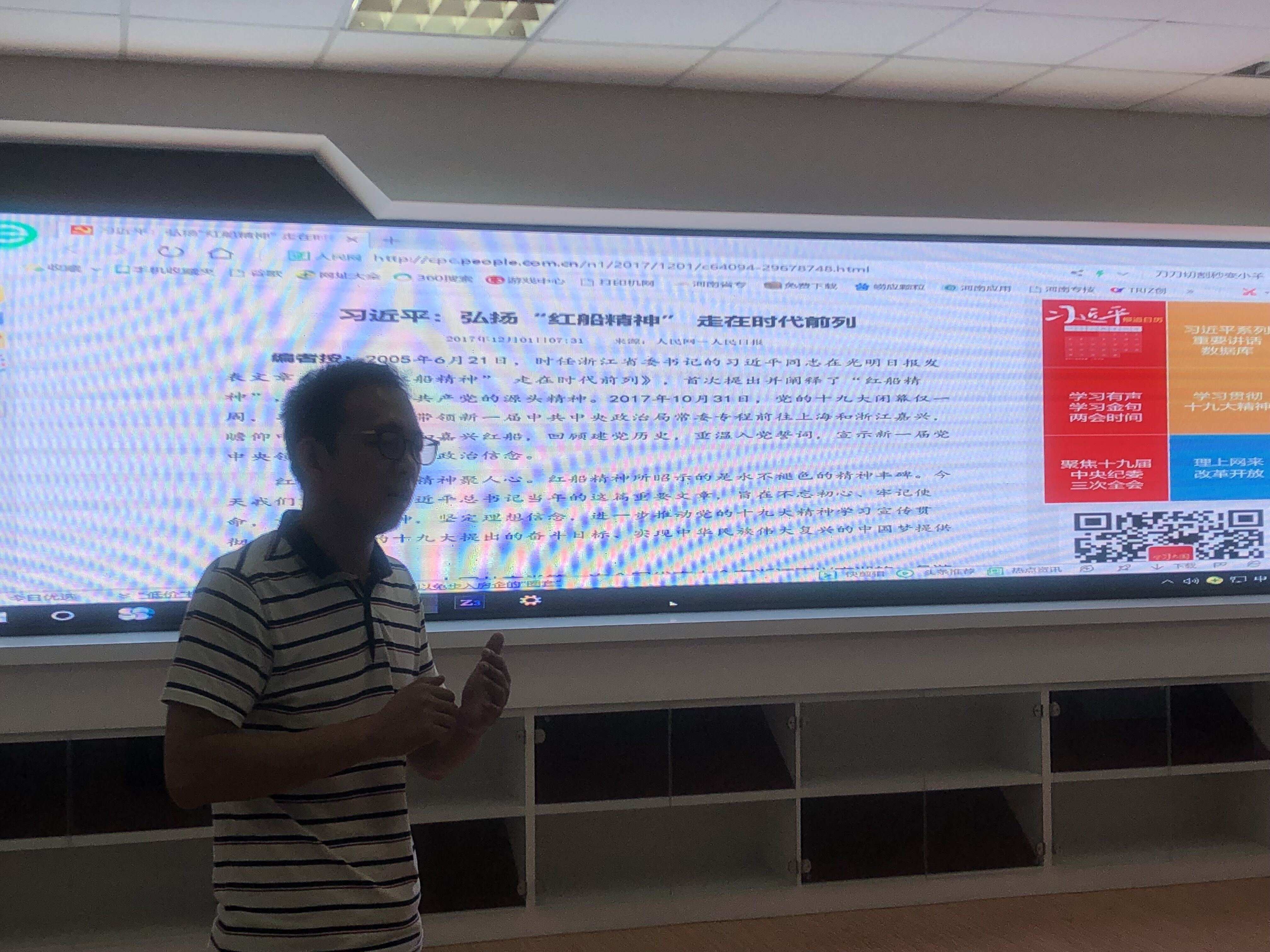 活动分三个环节进行。在第一环节中,党总支副书记朱冰同志带领大家回顾了中国共产党1921年召开第一次代表大会的基本情况,介绍了上海会址和红船会址的背景。通过介绍历史背景,为大家深入学习、准确领会习近平总书记的思想奠定基础。