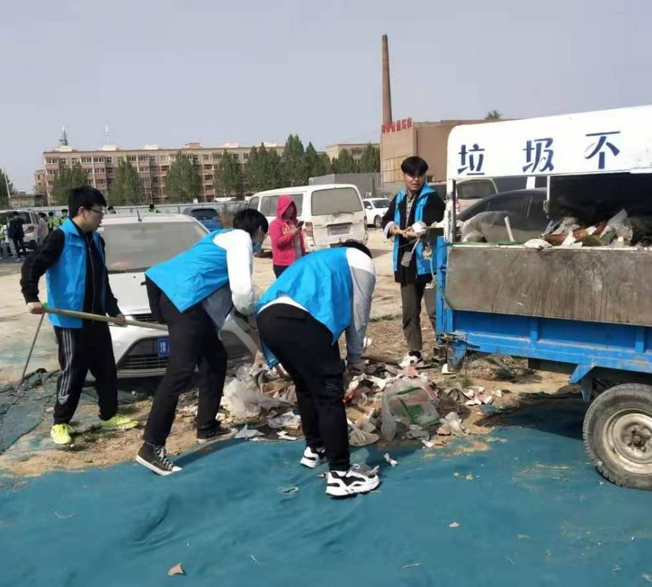 大家早早就准备好了活动所需的工具,他们跟随着牛玉芝老师一同走出校门,在学校东侧的停车场开始清扫垃圾,充分发挥不怕脏、不怕累的精神,分工协作,密切配合,任劳任怨,清理着每个卫生死角。