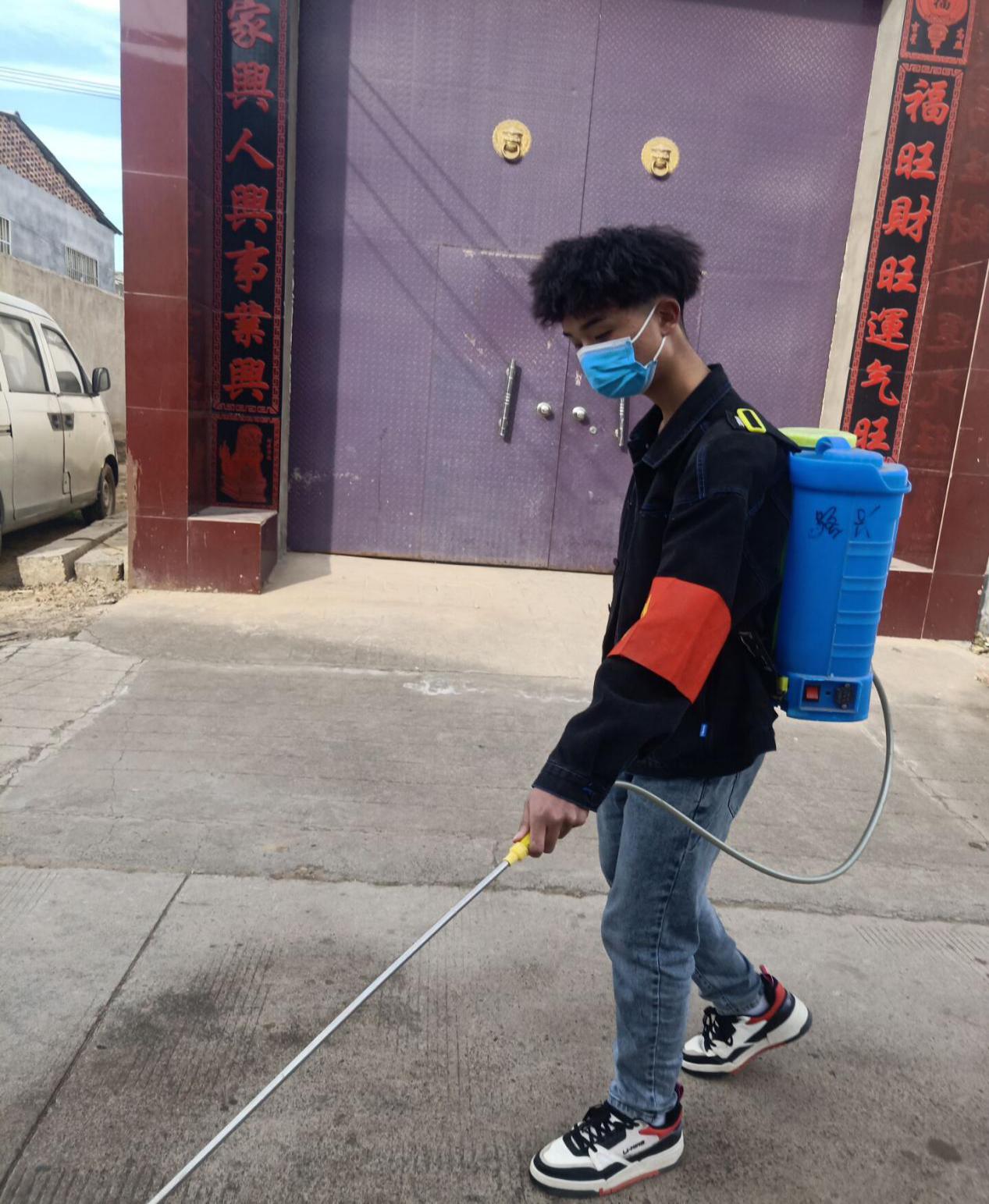 化工2002班王俊峰在寒假期间,积极参与到家乡(许昌市河街乡王岗村)疫情防控工作中,对主干道进行卫生消杀、垃圾清理,为美好乡村建设付出了辛勤的汗水。