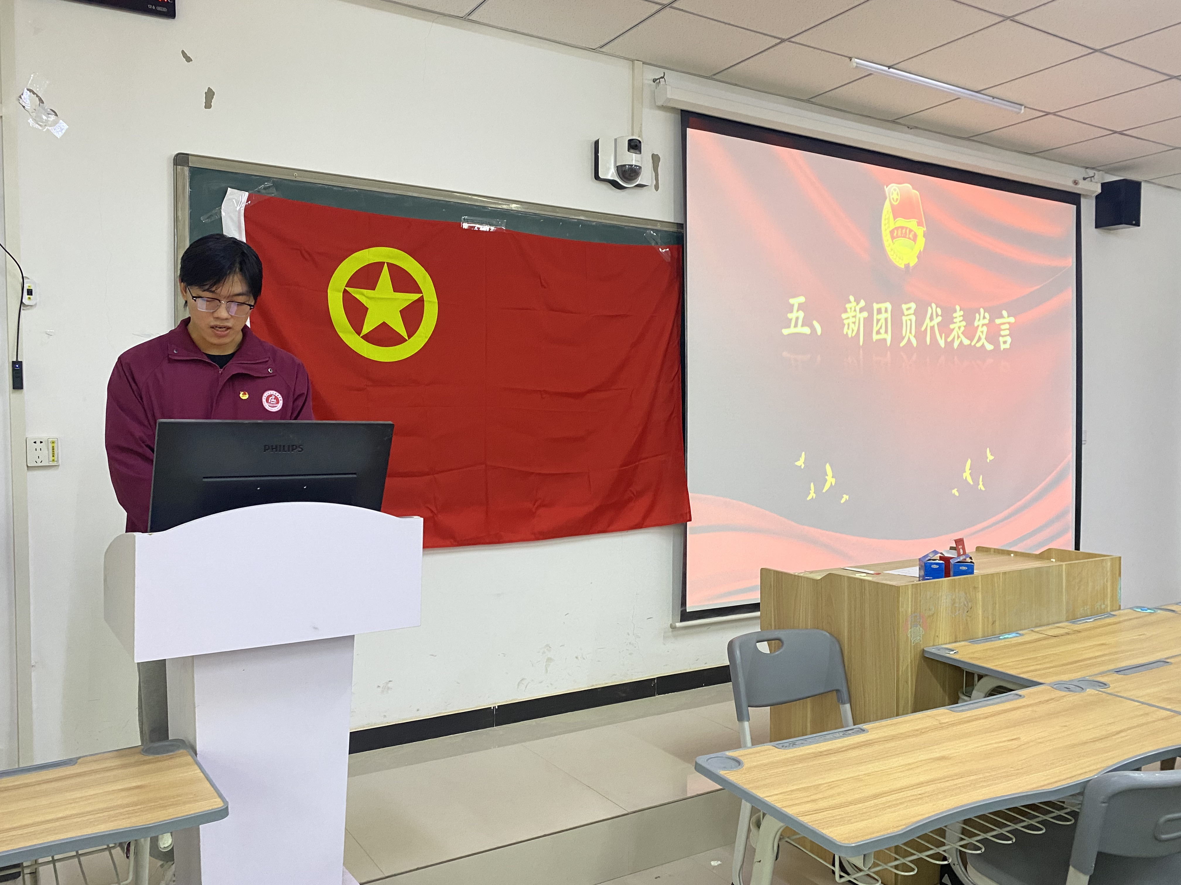 宣誓后,新团员代表牛博远发言,向团组织表达他们加入团组织的初衷和决心,将时刻铭记自己共青团员的身份,严格要求自己。