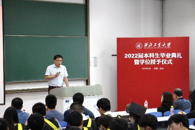 执行院长岳晓奎代表全体学院领导和教师对全体毕业生表示衷心祝贺,通过追忆过去四年中中国航天事业取得的一系列辉煌成就,永利集团官网砥砺前行佳绩,同学们的密切参与,激励同学们弘扬“航天精神”、“两弹一星”精神,将自己的理想同国家的战略需求、国家的命运、民族的复兴紧密联系在一起,脚踏实地,不怕困难,在奋斗和奉献中实现自己的远大抱负,预祝同学们明天更美好。