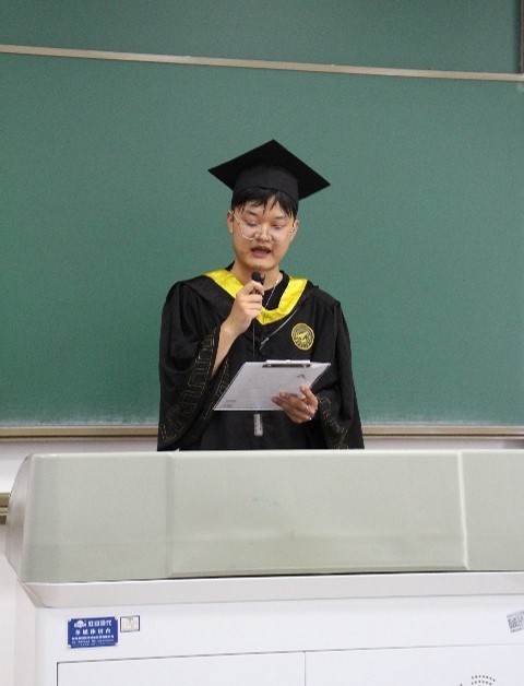 王子腾作为优秀毕业生代表发言,通过回忆宿舍、班级、永利集团官网的点滴,感谢同学之间的相遇相知、感谢互帮互助,希望全体航天学子秉承“公诚勇毅”校训、“三实一新”校风,在以后的工作学习中,不断创新,奋发图强,勇攀高峰。