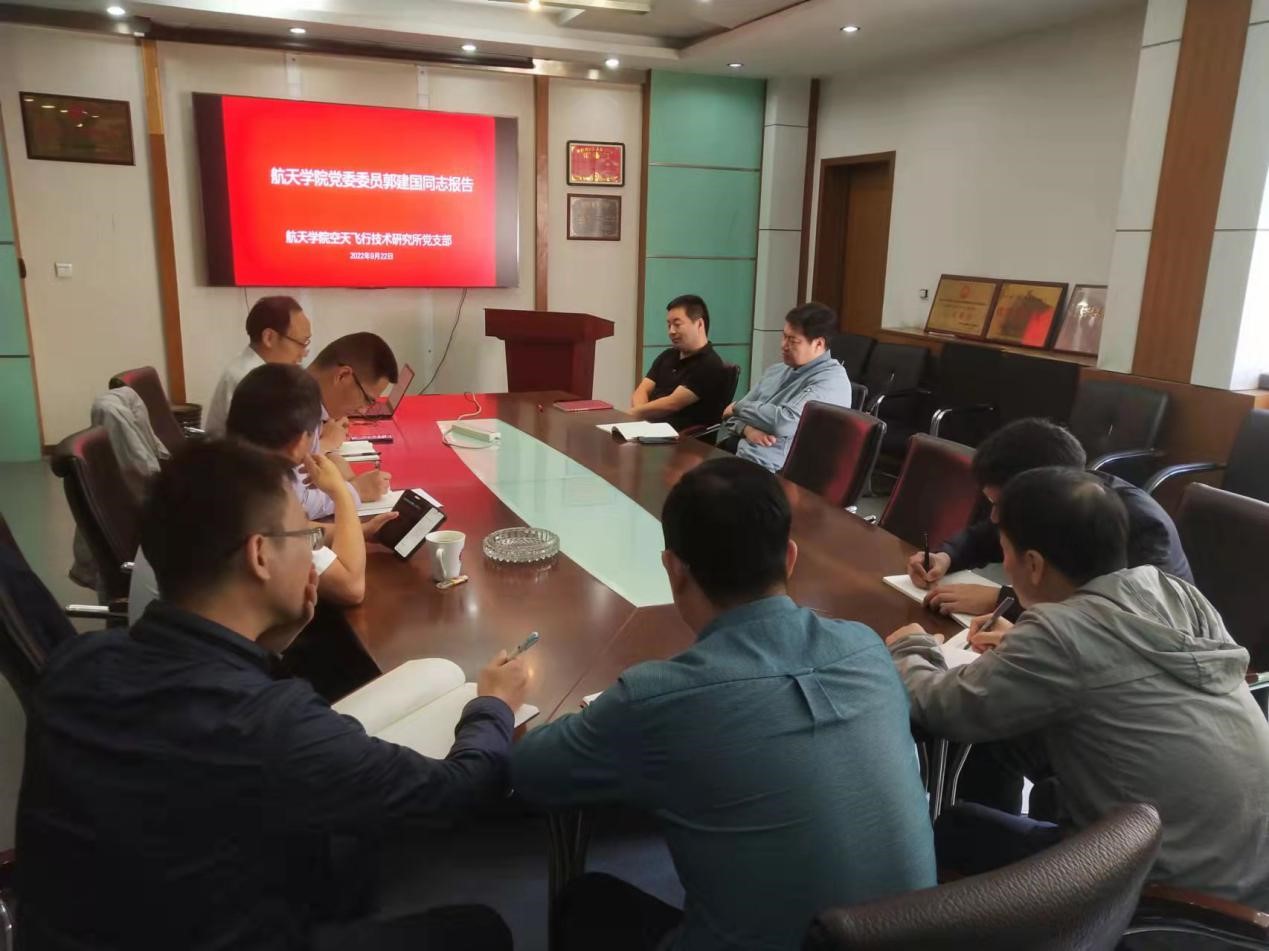 2022年9月22日,永利集团官网空天飞行技术研究所党支部召开了“严守纪律规矩 加强作风建设”专题组织生活会,教职工党员共18人参加了会议,会议由党支部书记刘磊同志主持,支部联系人、学院党委委员郭建国同志指导会议。