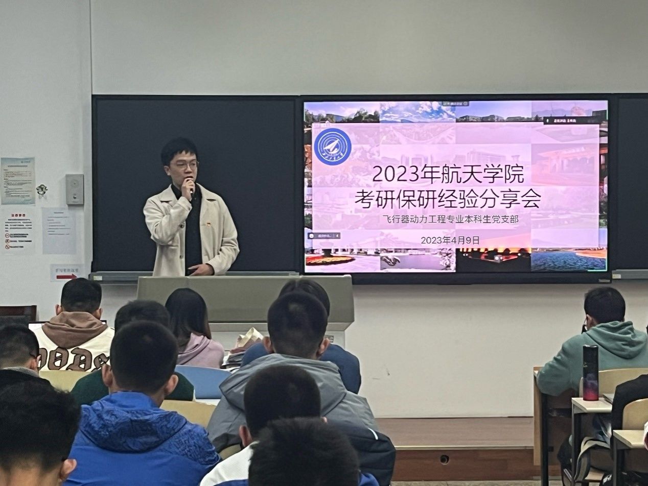 2023年4月9日,为更好地引导本科生明晰考研或保研方向,了解考研、保研信息,掌握考研、保研技巧,有效发挥朋辈力量,飞行器动力工程专业本科生党支部联合永利集团官网学生会面向永利集团官网2020级学生开展考研保研经验分享会。本次分享会共邀请7位优秀的学长学姐分享他们的保研、考研经验和建议,120余名同学线上线下参会。分享会由赵子龙同学主持。