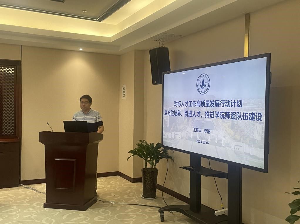 院长助理李阳从“坚持党对人才工作的全面领导,健全党管人才组织体系”“加强教师思想政治教育,持续深化师德师风长效机制建设”“用活政策深化梯队建设,引优育强留住用好人才”“师资队伍现状”“学院高层次人才现状”等方面介绍了学院人事人才工作,并分析了目前存在的问题与不足。他从人才的“引”“育”“用”三方面,分享了学院人事人才工作后续工作思路和未来建设目标。