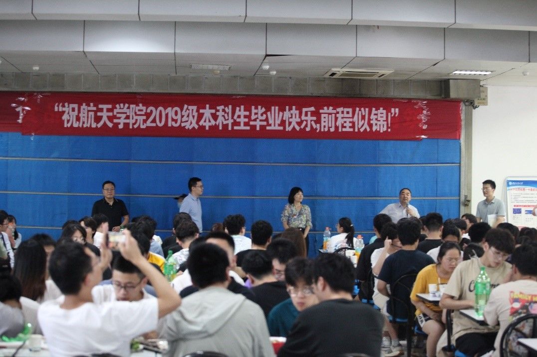 座谈会圆满结束后,永利集团官网2019级全体师生欢聚一堂,举行了毕业聚餐。在这个特殊的时刻里,岳晓奎院长代表学院全体教师向永利集团官网2019级本科生表示了最诚挚的祝福和感谢:“你们是永利集团官网的骄傲,你们用勤奋和智慧书写了属于自己的精彩篇章。希望你们毕业后继续保持对航天事业的热爱和追求,祝你们毕业快乐,前程似锦!”