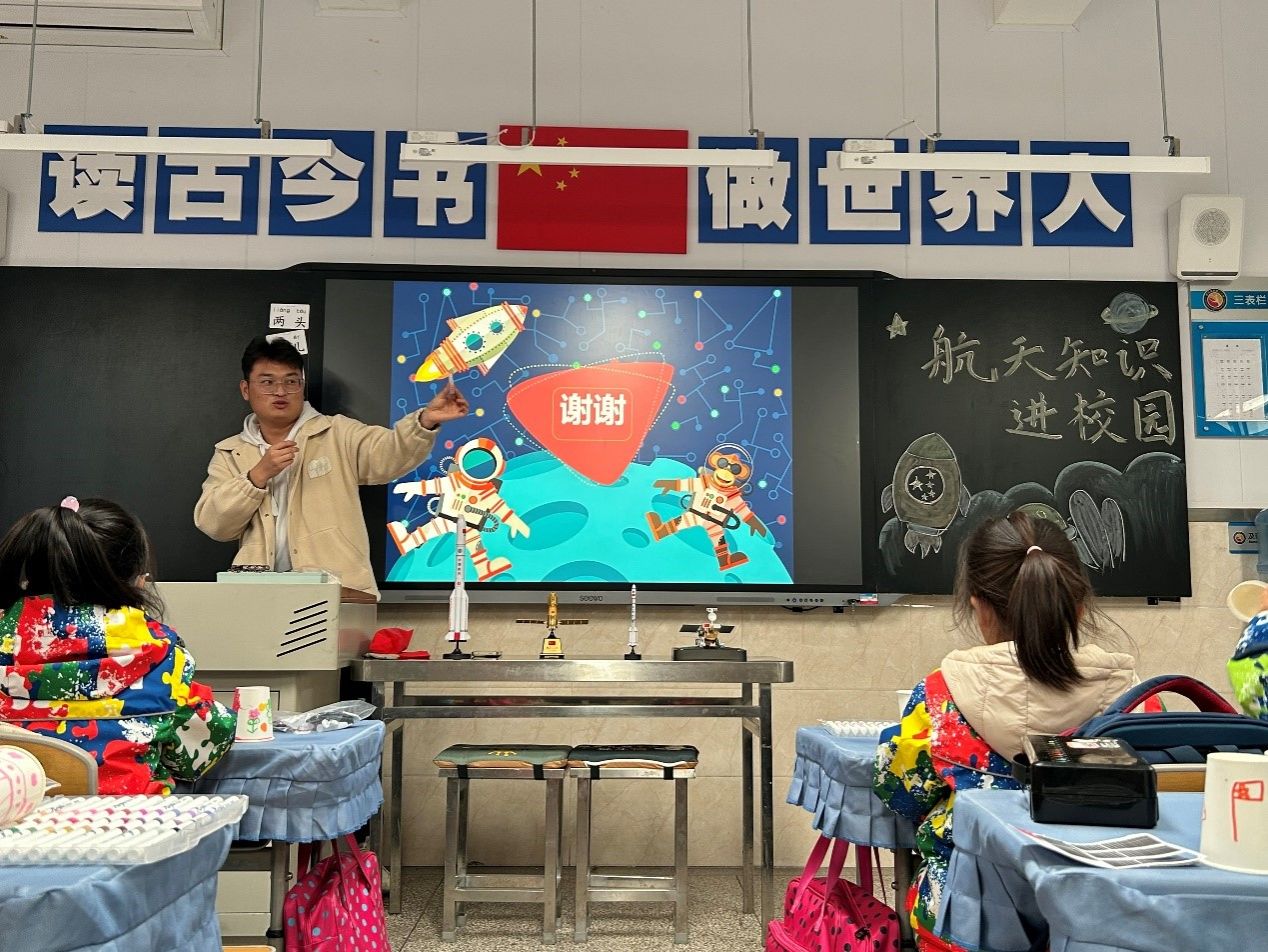 12月4日,永利集团官网学生航天科普志愿者服务队走进西安高新第二小学,为一年级的小朋友们进行航天科普。志愿者们倾情教学、细心指导,小朋友们认真听讲、踊跃实践,共同完成了一堂生动有趣的航天科普实践课。