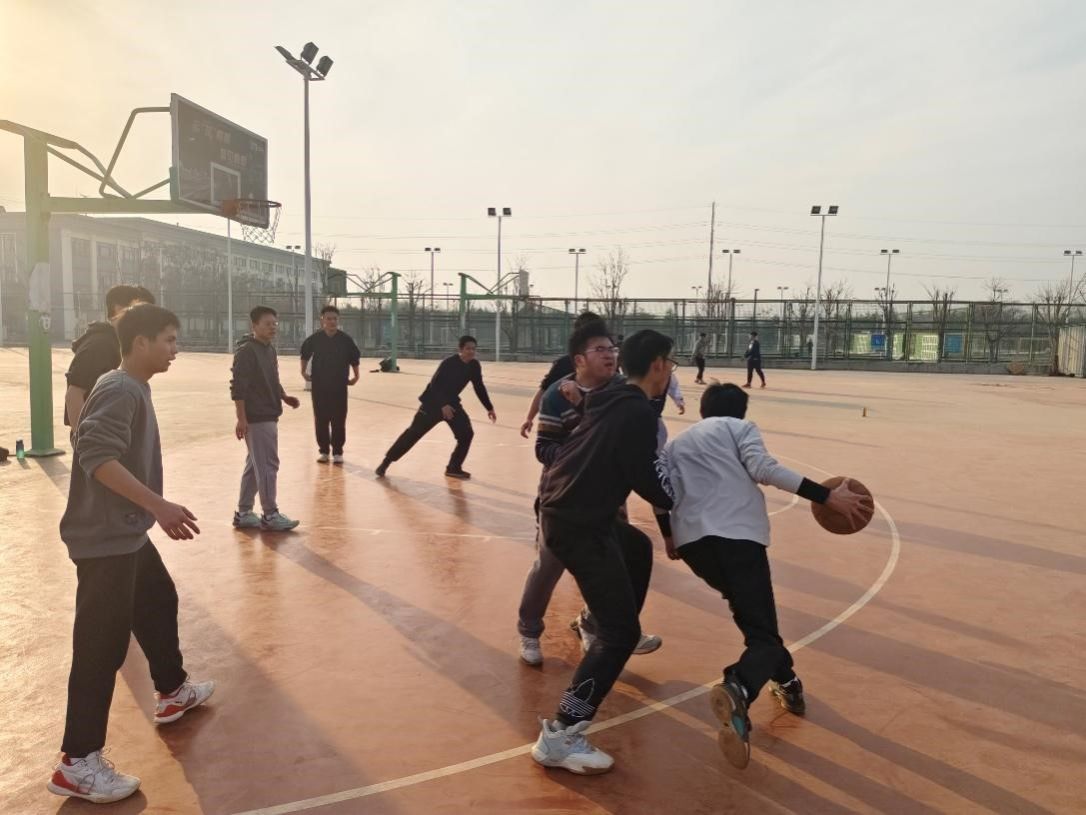 在篮球场上,17班与飞天班、15班联队之间展开了激烈角逐。队员紧密配合、默契传球、迅速进攻、严密防守、精准投篮……两队队员全力拼搏,整个比赛过程紧张又热烈。