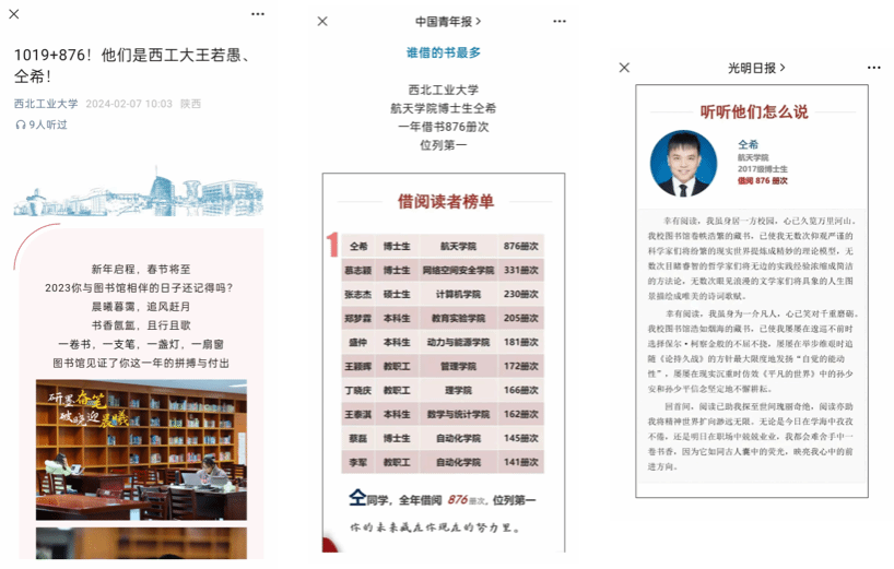 除此之外,仝希同学还是西工大图书馆2023年借阅图书最多的人,被永利集团官网、中国青年报、光明日报等多个官微所报导。他也向同学们分享了自己阅读文献的经验与感想,第一,集百家所长。第二,相同点相互对照。第三,不同点积极延伸。第四,课本中的示例勤于验算。第五,快速且有重点地阅读。