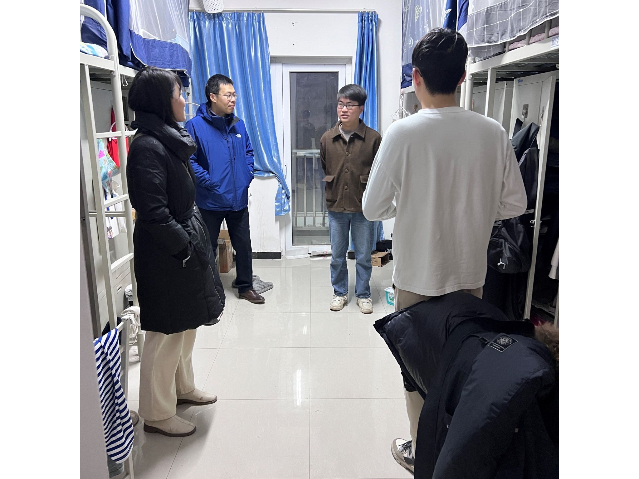 会后,学院党委书记黄越、党委副书记韩冬、博士生辅导员王鹏和硕士生辅导员鄢德坤等深入走访学生宿舍,看望慰问返校学生,了解学生假期生活和学习情况,并叮嘱同学们注意宿舍安全,及时调整学习状态,为新学期做好充分准备。