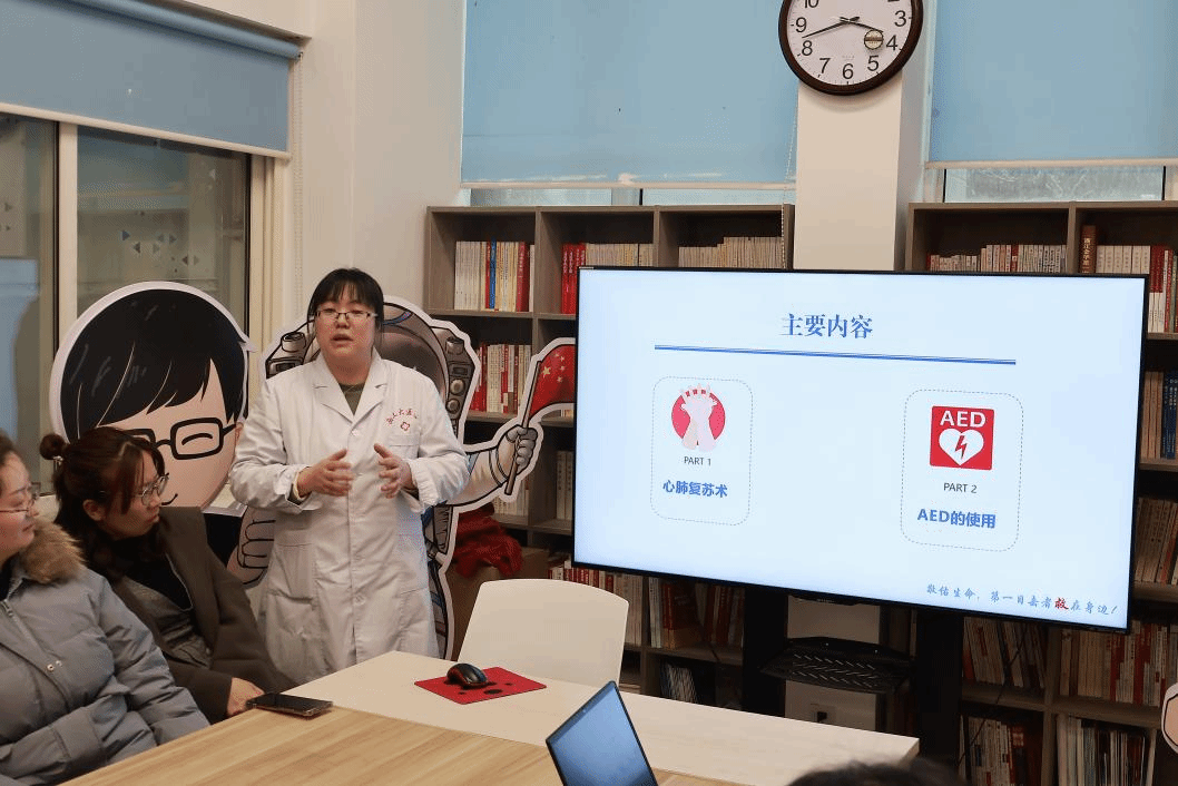 随后,永利集团官网责任医师汤燕做了题为《急救知识与技能培训》的报告,详细为在场师生讲解了心肺复苏术的操作方法与要点,并对自动体外除颤仪(AED)的使用方法进行示范。