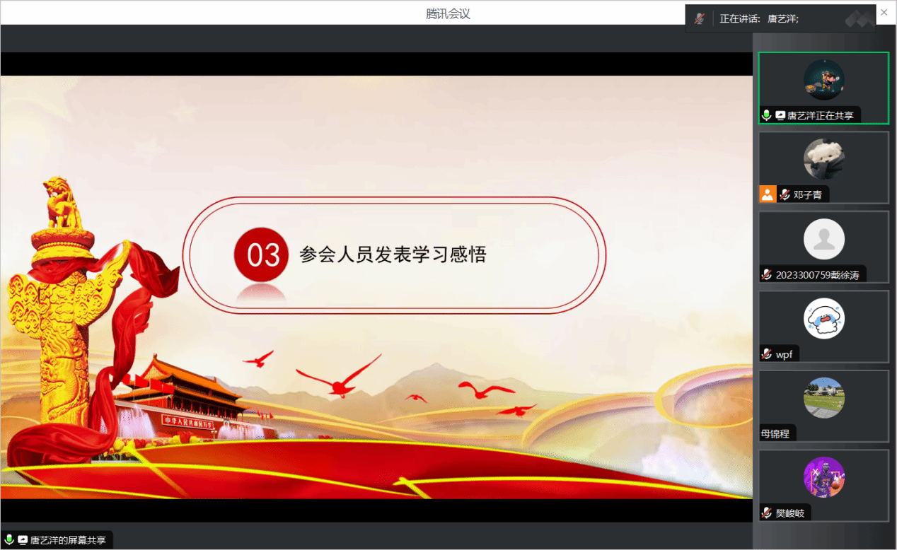 唐艺洋同学首先带领大家学习了习近平总书记五四青年节对全国广大青年的寄语内容。“党中央对广大青年充分信任、寄予厚望!”习近平总书记的殷切寄语,让同学们备受鼓舞、倍感振奋,大家纷纷表示,要牢记习近平总书记殷殷嘱托,坚定不移听党话、跟党走,努力成为有理想、敢担当、能吃苦、肯奋斗的新时代工大青年,在为中国式现代化挺膺担当中展现青春作为、彰显青春风采、贡献青春力量。
