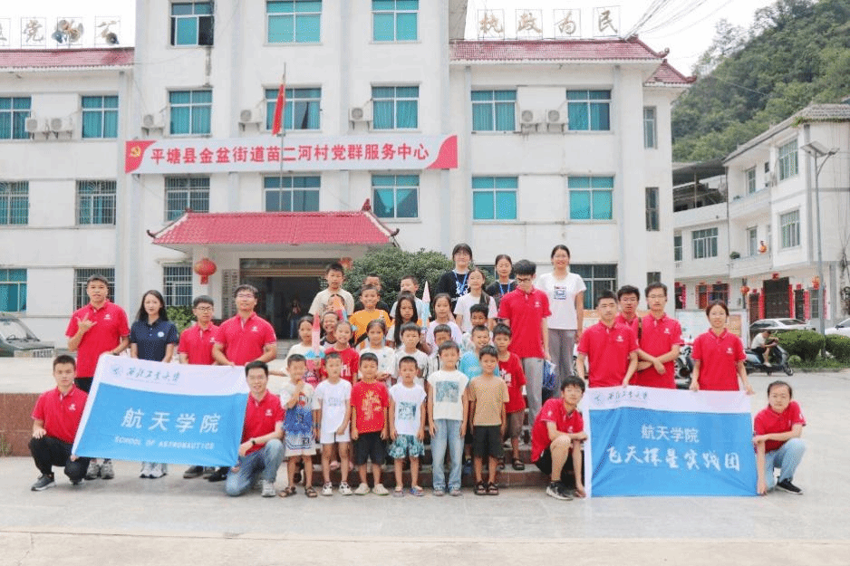 为普及航天知识,激发青少年崇尚科学、理性求知、勇于探索太空的热情,实践团学生骨干赴贵州平塘县金盆街道苗二河乡综合文化站为留守儿童开展航天知识科普活动。首先,为孩子们进行天文知识科普,讲述星系、空间探测、运载火箭、空间站等方面的知识。随后,开展制作简易水火箭教学活动,孩子们动手操作、热情高涨。户外放飞环节将活动推向最高潮,在响亮的倒数声和欢呼声中,小火箭承载着孩子们对未来的期望与愿景,腾空而起,犹如中国的航天事业飞天穹宇、逐梦苍穹。最后,孩子们带着自己的小火箭和师生亲切合影,希望有一天,他们的梦想会像今天亲手放飞的水火箭,穿越蔚蓝的天际,绘出一道绚烂而悠长的希望之轨。