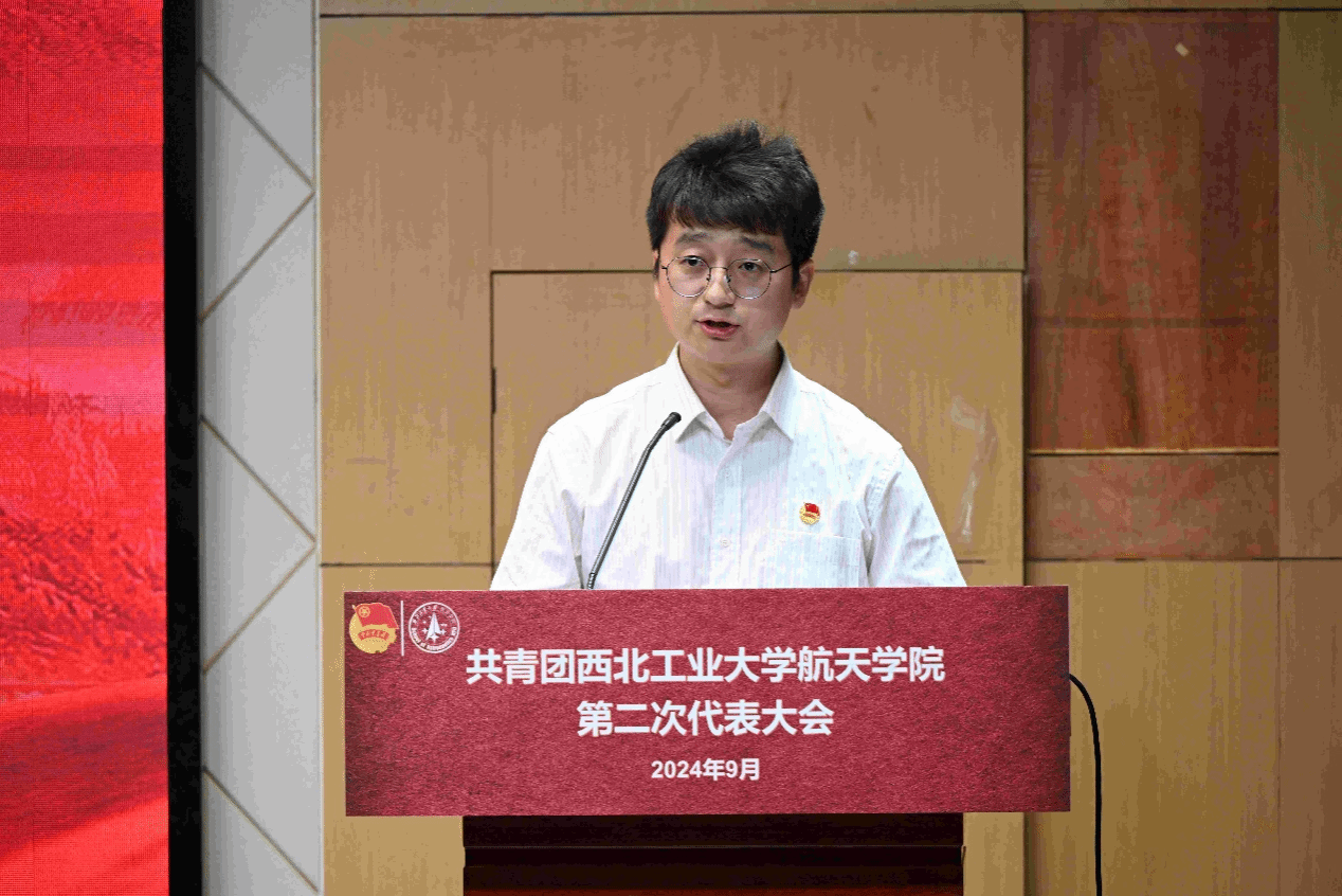 韩冬向到场老师、学生团员代表们表示热烈欢迎,并向学院拼搏在一线共青团工作的师生们致以亲切问候。他明确阐释了本次大会在习近平新时代中国特色社会主义思想引领下,吸纳过往之鉴,擘画未来蓝图的主要任务。他提到,我们通过此次团员代表大会,进一步凝聚青年力量,明确奋斗目标,激发创新精神,为航天事业的腾飞做出新的贡献。在大会即将开幕之际,他向学院共青团工作提出四点希望:第一,加强思想引领,坚定理想信念;第二,铭记时代使命,勇担青春责任;第三,发挥组织优势,服务青年成长;第四,勇于创新实践,助力航天强国。他鼓励同学们珍惜此次大会的宝贵机会,积极参与讨论,认真听取各方意见,为学院的团学工作建言献策。