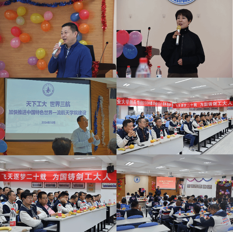 随后,孟中杰详细介绍了学院近年来的发展情况及未来发展规划和目标,并强调学院将持续以总师育人文化为牵引,以培养“具有家国情怀,追求卓越、引领未来的领军人才”为目标,坚持培养学生具备“专业精、系统强、重实践、能担当”的“总师”雏形特质,为提高国家人才自主培养质量不断贡献我们的力量。校友代表也做了表态发言,他们表达了对母校的深厚感情,并表示将继续秉承航天精神和学校的优良办学传统,为航天事业和母校的发展贡献自己的力量。校友们的发言激励了在场的每一位师生。