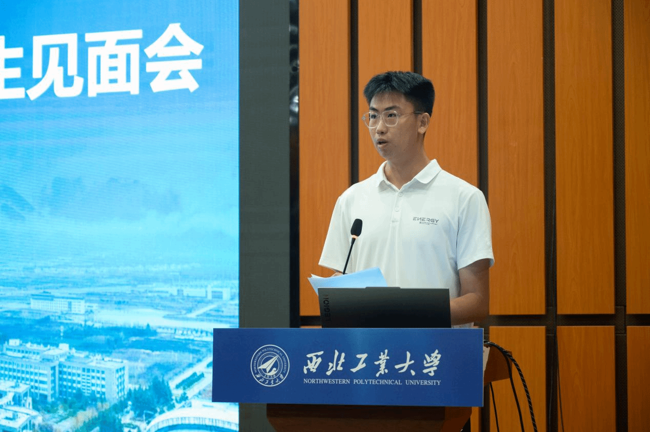 接着,新生代表、永利集团官网陈士橹飞天班吕恩豪同学发言。他分享了自己因“长征火箭”“神舟飞船”“飞天二号”等国之重器萌发航天梦想,最终选择西工大的初心,并代表全体新生表态:将以“公诚勇毅”校训为指引,以“三实一新”校风为准则,把个人理想融入国家航天事业发展,努力成为 “勇攀高峰的追梦人、国家战略科技力量的未来担当”。
