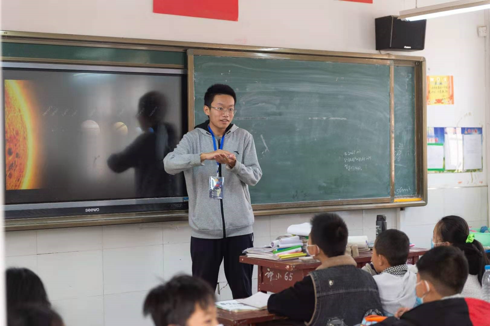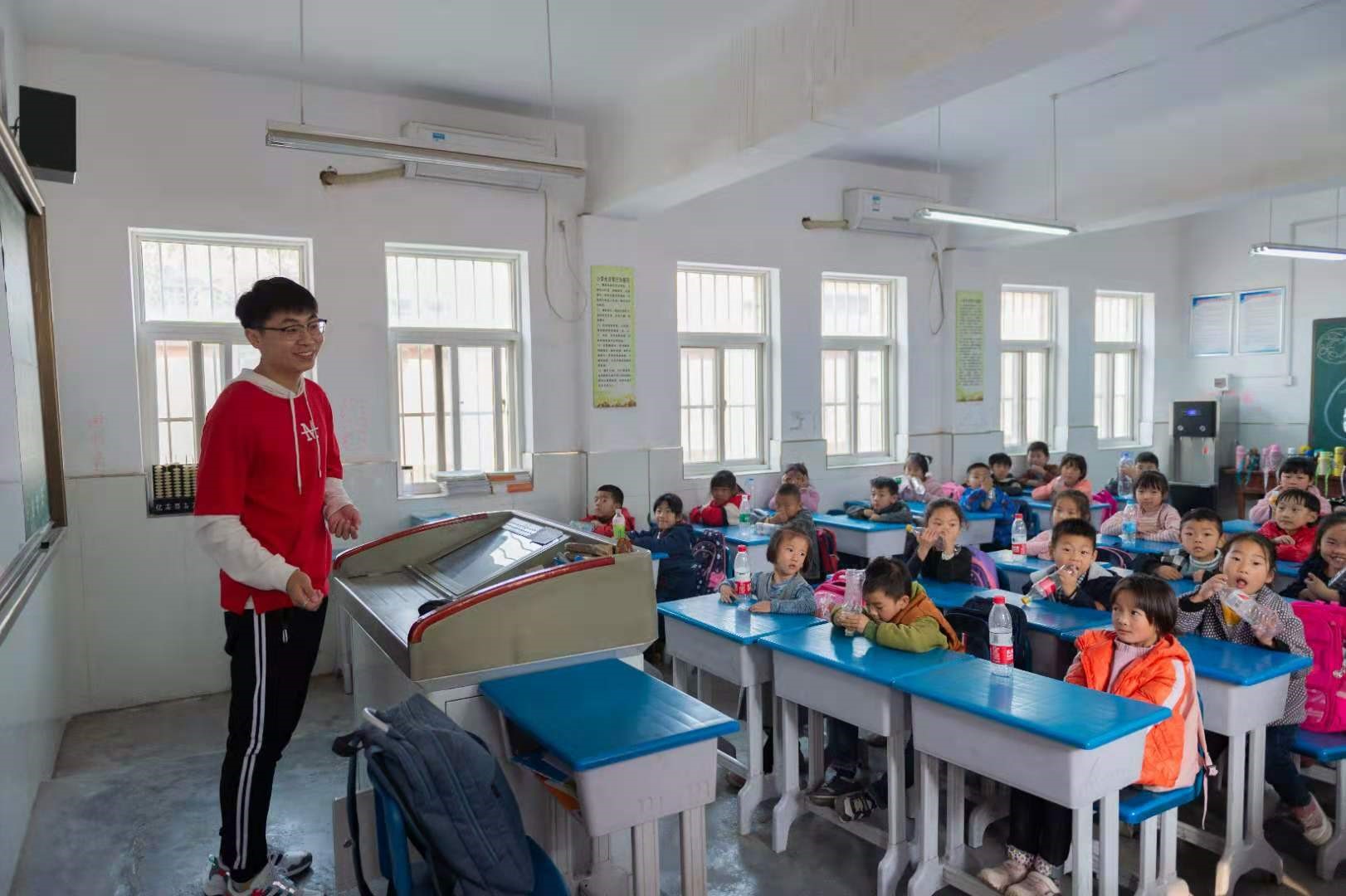 当参加活动的志愿者走进郭村小学的教室时,孩子们充满喜悦与期待的眼睛便一直注视着他们。