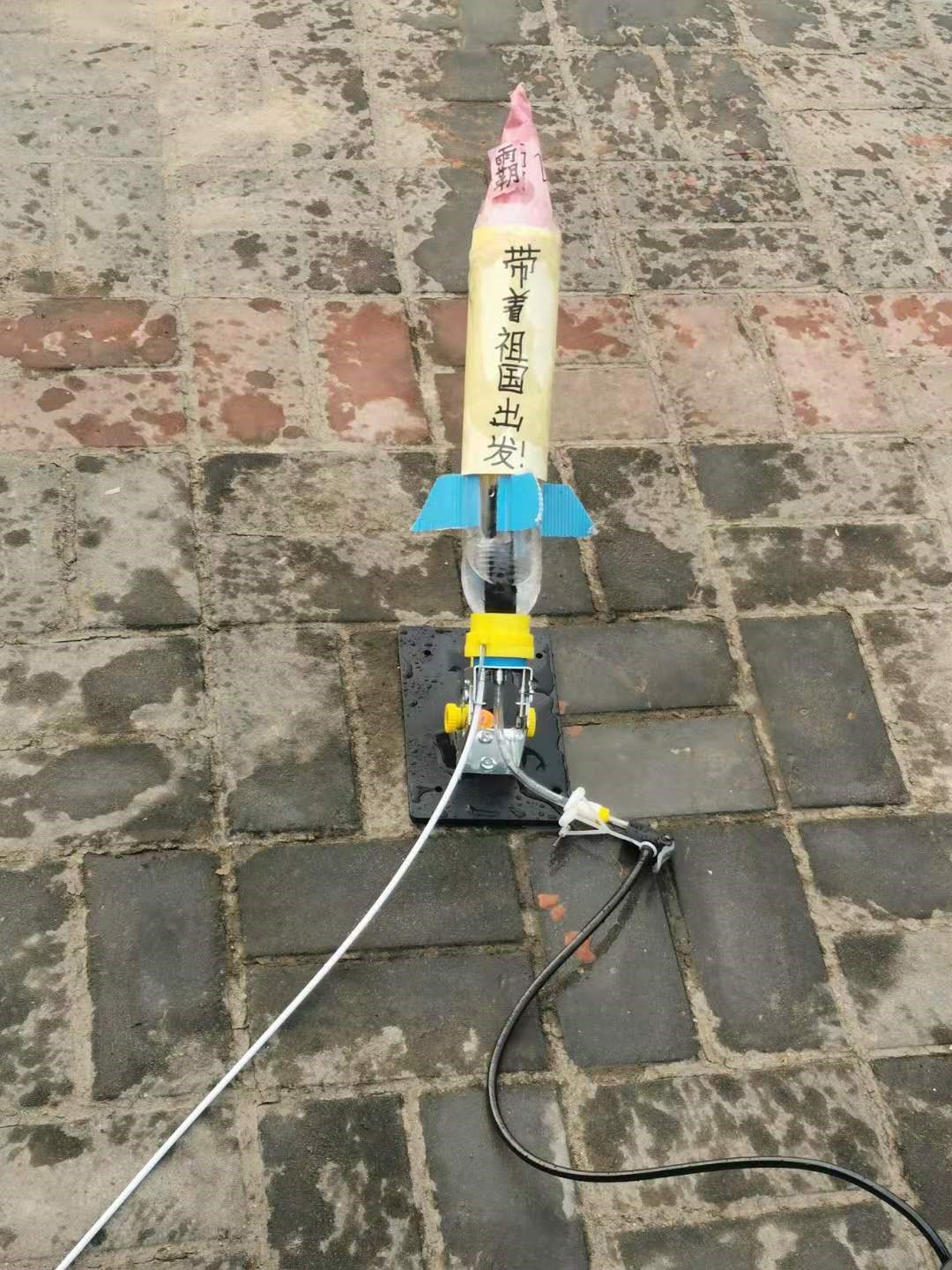 最后,孩子们进行水火箭发射。在大家整齐的倒数声后,发射按钮被按下,一阵水汽喷出,孩子们自制的水火箭腾空而起。天空中划过一支支水火箭,还有属于孩子们的梦想和未来。也许多年以后,他们的梦想会如同今天发射成功的水火箭一样,在湛蓝的天空中划出一道美丽的曲线。