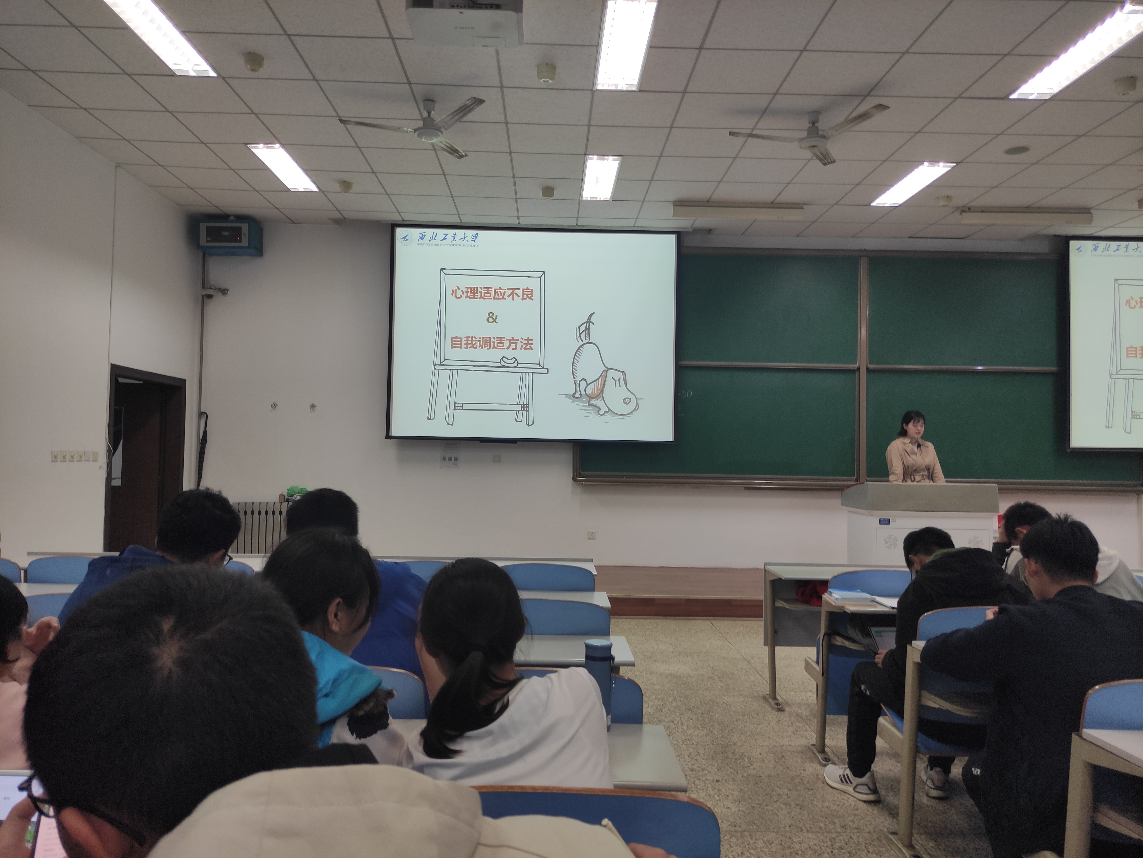 针对新生普遍存在的心理适应不良情况,胡纯老师指出,健康的心理不是没有不良情绪,而是懂得采用合理的方法及时化解,保持一个平稳的心态,“如其所是,活在当下”。胡老师还为同学们讲授了几个自我调整的方法,包括宣泄法、转移法、升华法等等。同学们认真聆听,积极学习,倍受启发。