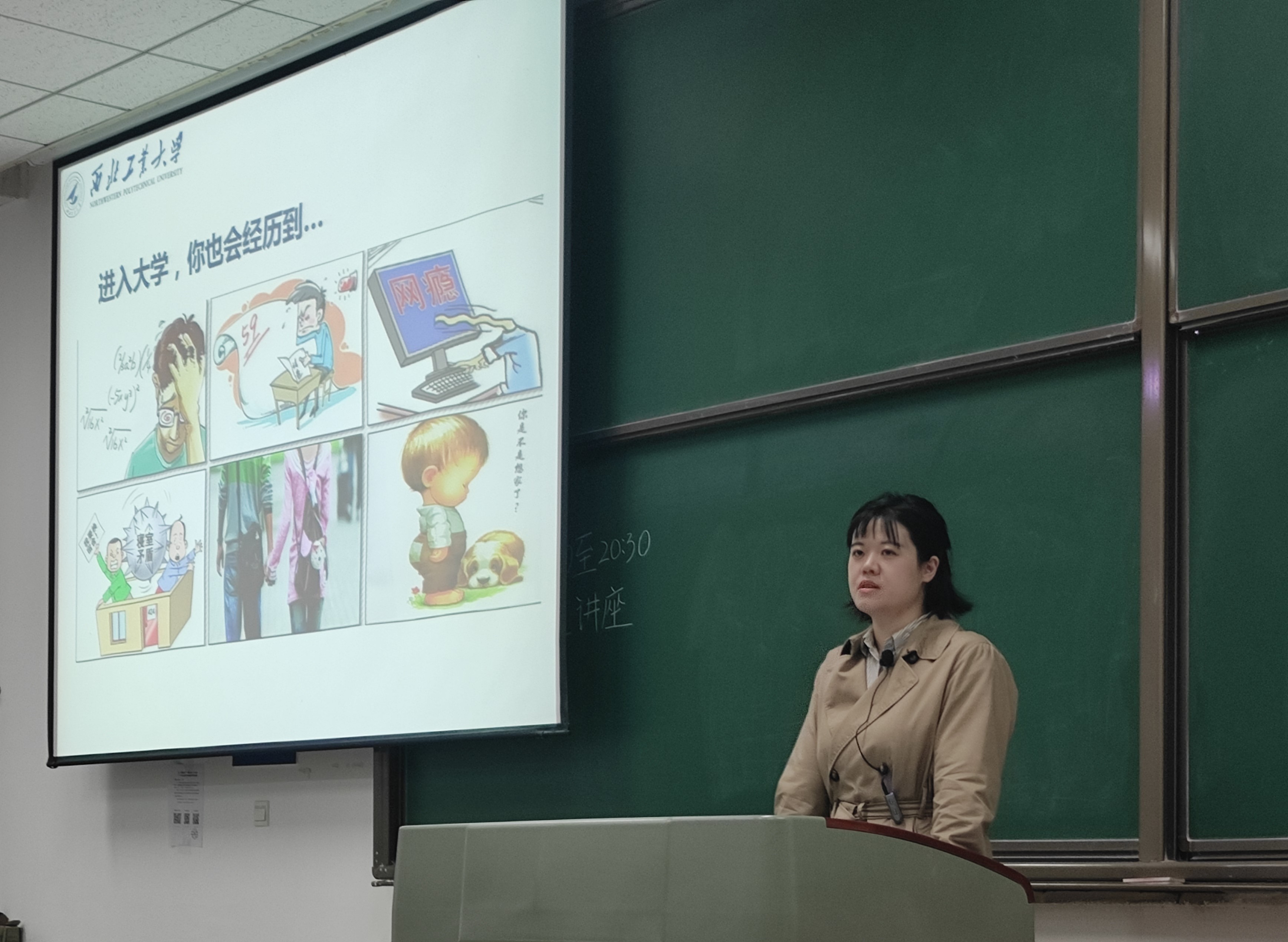 胡纯老师讲到,初入大学,同学们对未来的生活充满期待,纷繁复杂的课程、活动、竞赛让人目不暇接,但同学们务必要找准自身定位,明确前进方向,在学习之余合理安排课外活动,珍惜每一刻青春年华,让大学生活过得充实、有意义。