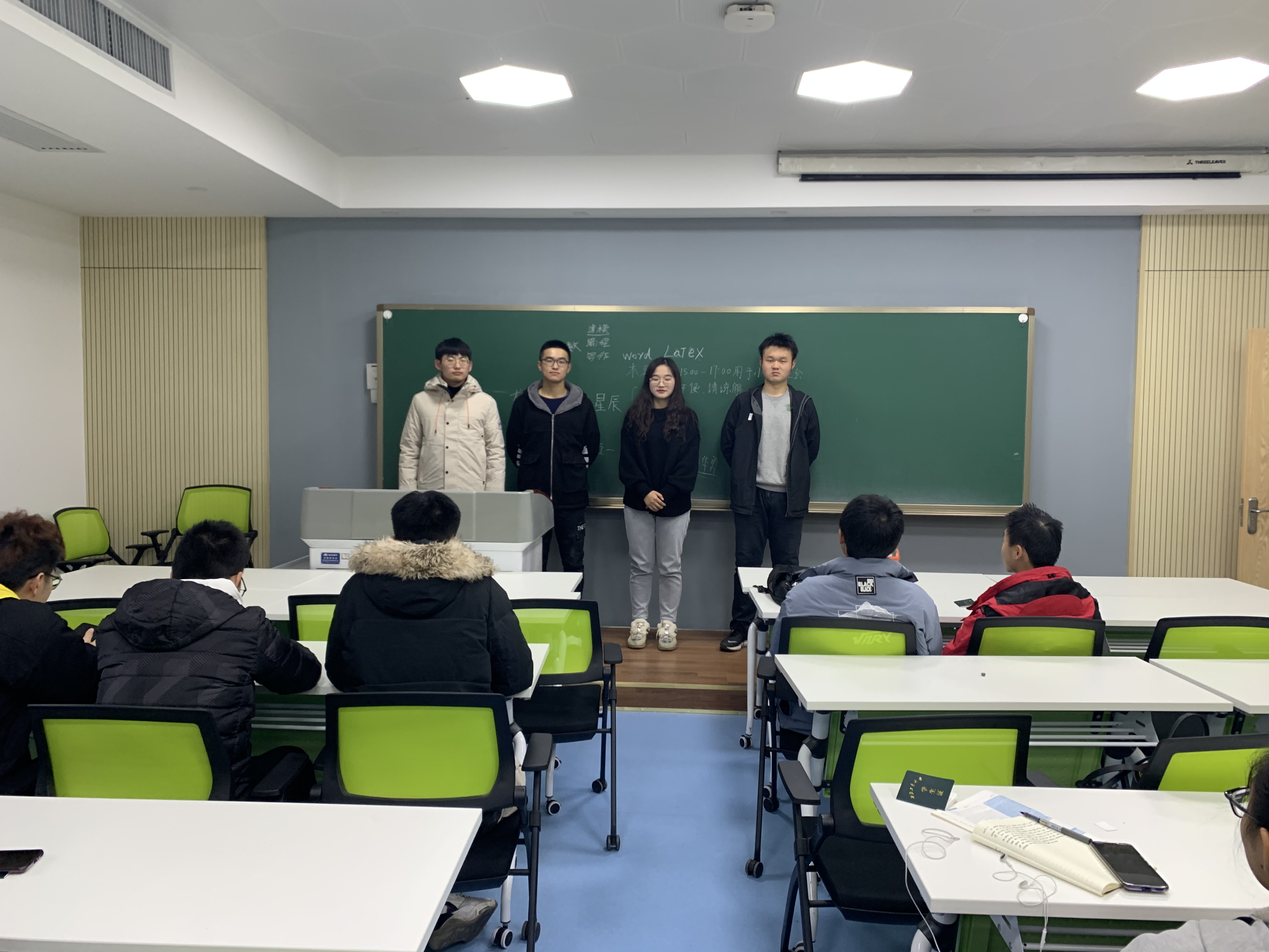 接下来进入主题班会环节,首先,由来自DL011915的大二优秀学长王先至、学姐尤怡昀以及来自大四02011704的保研学长先越伟与学长任帅龙为大家做经验分享。