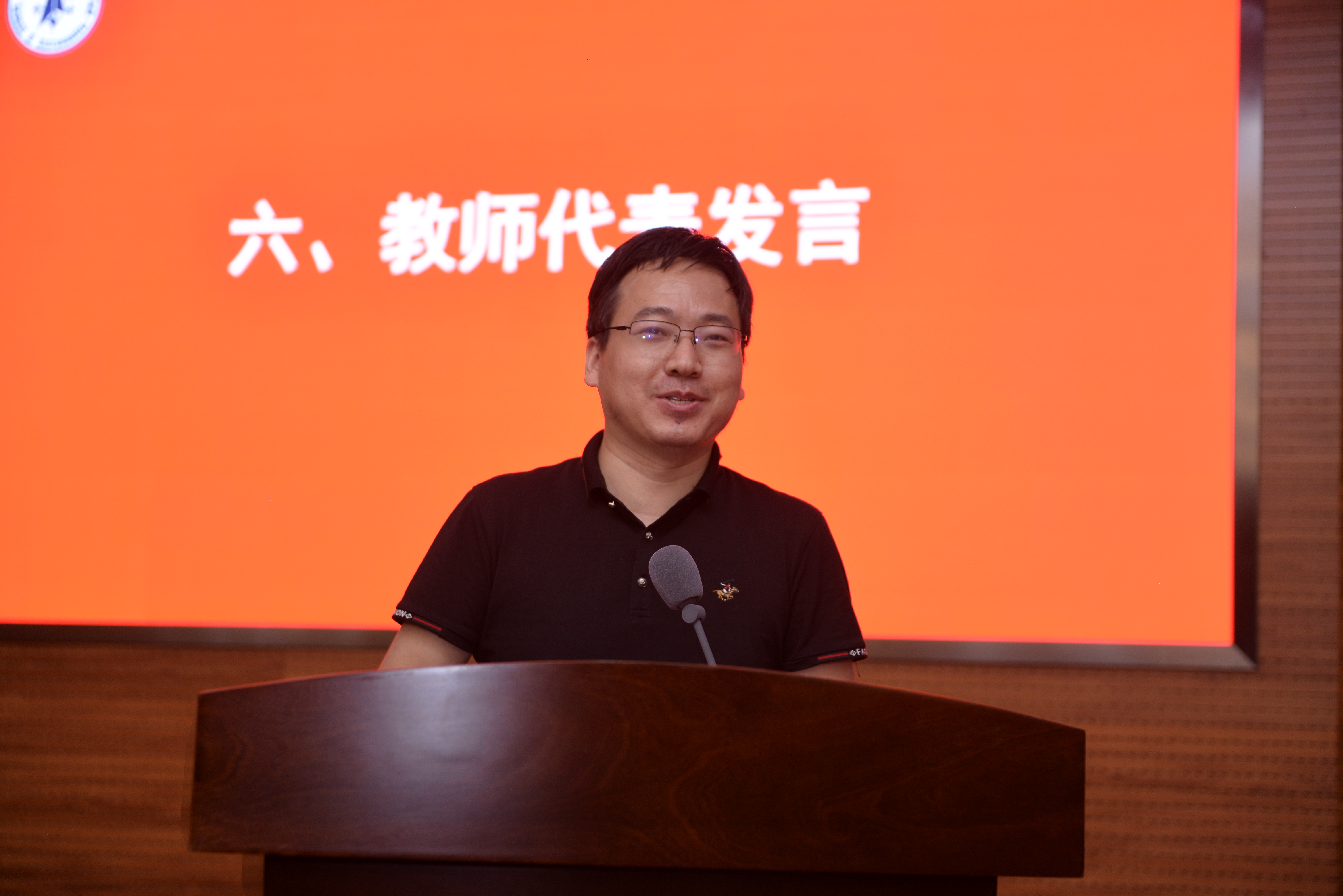 之后,教师代表张夷斋发言,他结合自己的求学和工作经历深切说到:毕业虽然标志着学生时代的结束,却绝不是终点。希望各位同学不要沉溺于眼前的成功,更不要计较现在的失意,要志存高远,砥砺前行。