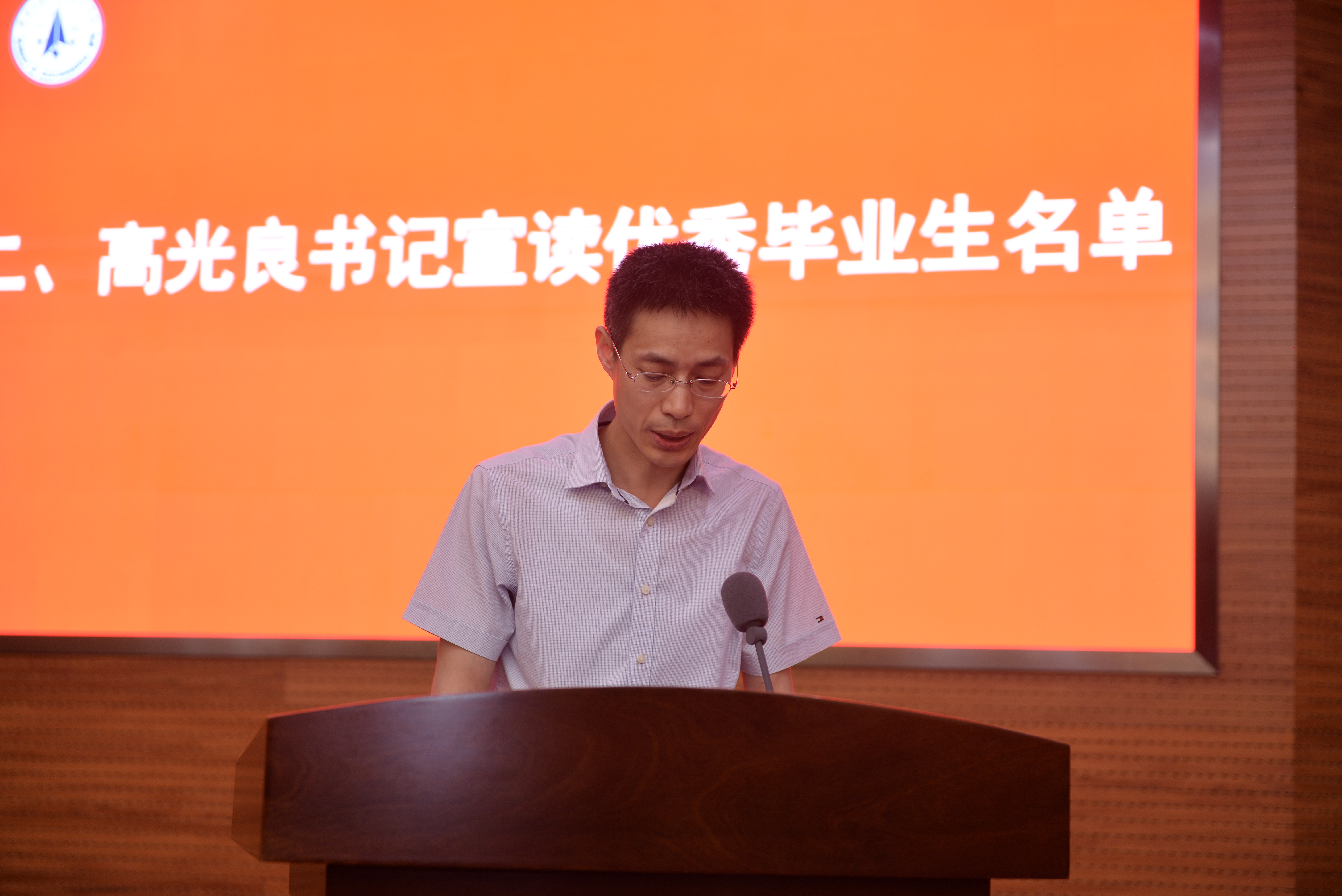 毕业生代表马孟奇同学发言,言语中表达了对母校的不舍,又饱含感激之情,立志将“公诚勇毅”的校训和“三实一新”的校风内化于心,外化于行,继续传承和发扬工大精神、航天精神,只争朝夕,不负韶华,星辰大海,一苇以航。接下来带领学院全体毕业生宣誓:胸怀祖国、发愤图强、埋头苦干、永攀高峰,为把我国建设成为世界科技强国、航天强国作出新的更大的贡献。