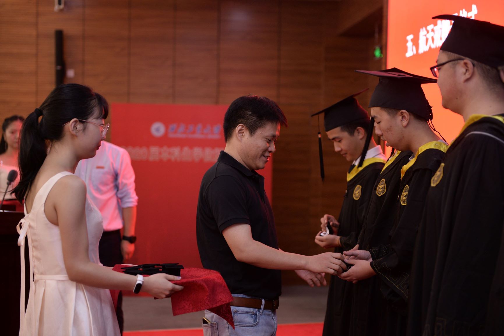 最后,院长樊会涛院士语重心长地为毕业生送上一堂“家国情怀”毕业思政课。樊院士通过现场聆听习近平总书记给科学家代表的亲切回信,感触很深,希望同学们牢记总书记的殷殷嘱托,树立与这个时代同心同向的理想信念,勇担时代赋予的历史使命,在新时代创新创造创业的生动实践中建功立业。樊院士结合三十多年的科研经历,提三点希望与各位航天学子共勉:一是希望同学们热爱国防事业。鼓励要自觉把个人奋斗融入国防事业发展,把个人理想融入民族复兴大业,为国家安全、民族振兴做出自己应有的贡献。二是希望同学们崇尚科学精神。科学的真谛在于求真,科研工作是实打实的,来不得一点虚,容不得半点假;科学的生命在于创新,要树立全球视野,弘扬创新精神,培育创新能力,树立敢为天下先的志向和信心,敢于走别人没有走过的路;科学研究要有献身精神,要静得下心、受得了苦,耐得住寂寞,要做长期艰苦细致、默默无闻工作的打算。三是希望同学们学会做人做事。嘱托各位学子做人要海纳百川,诚信为本,忍让为先,要爱岗敬业,恪尽职守,潜心钻研,踏实工作,认认真真做好每一件事,把自己的心血和智慧撒播在祖国国防事业这片充满希望的田野上。