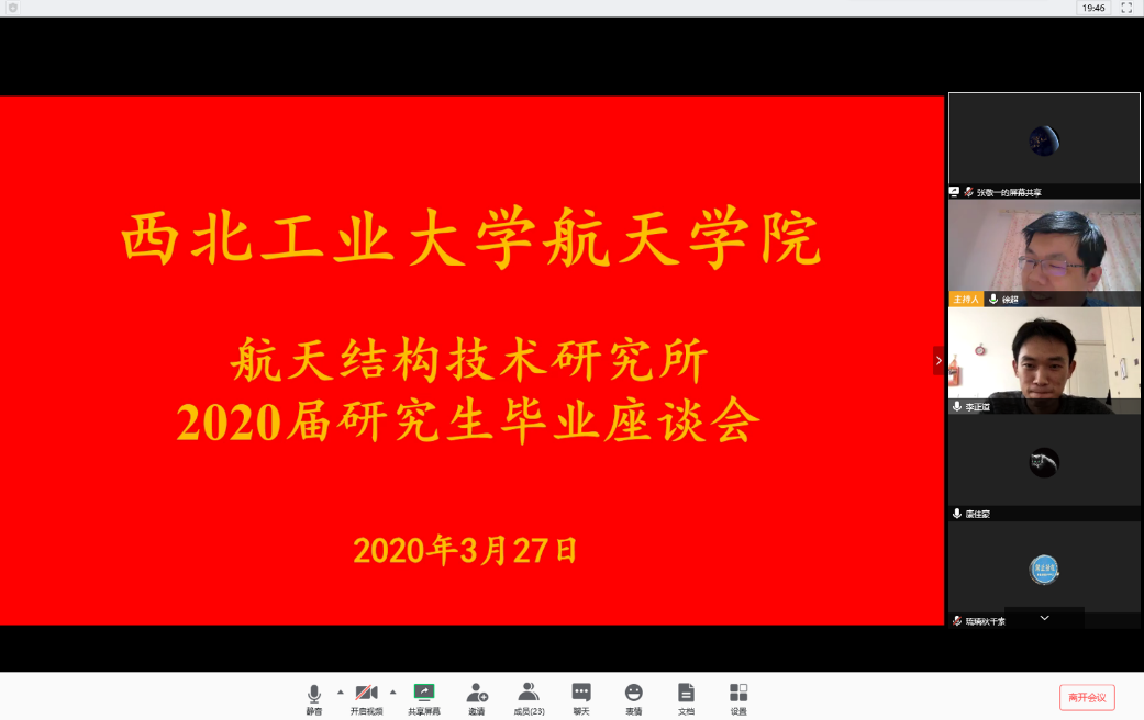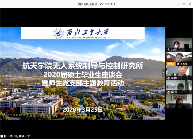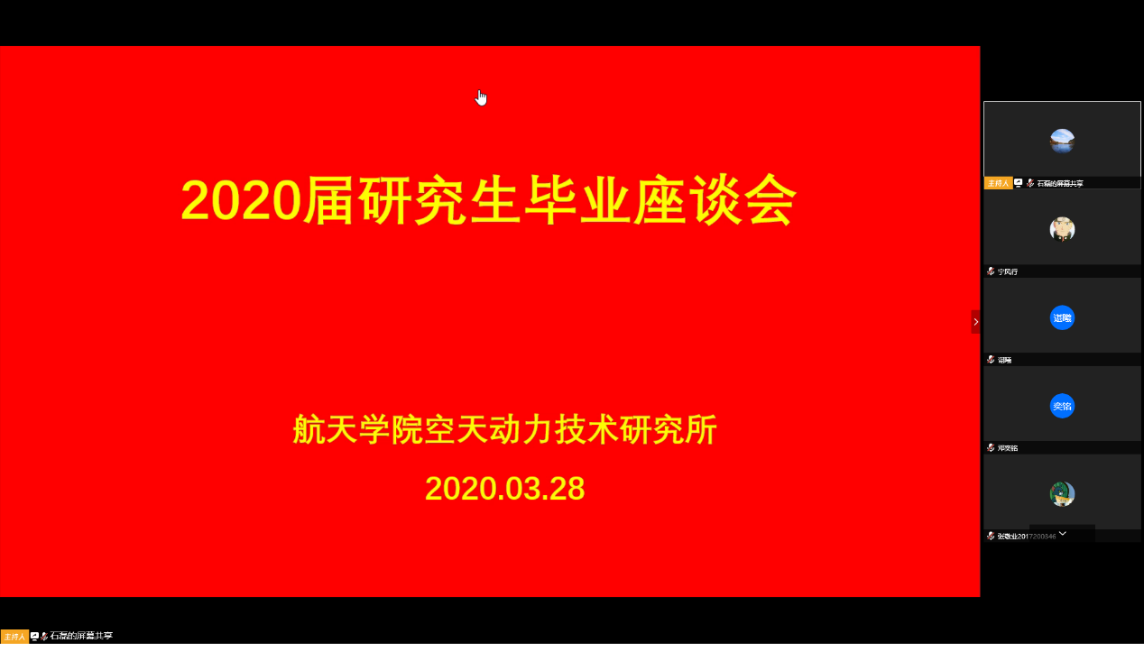 2020年3月25日至4月2日,永利集团官网按照学校要求,以研究所为单位组织召开了“感恩工大情 激扬爱国志”2020届研究生毕业座谈会,学院领导、研究生导师和2020届毕业研究生共同参加。