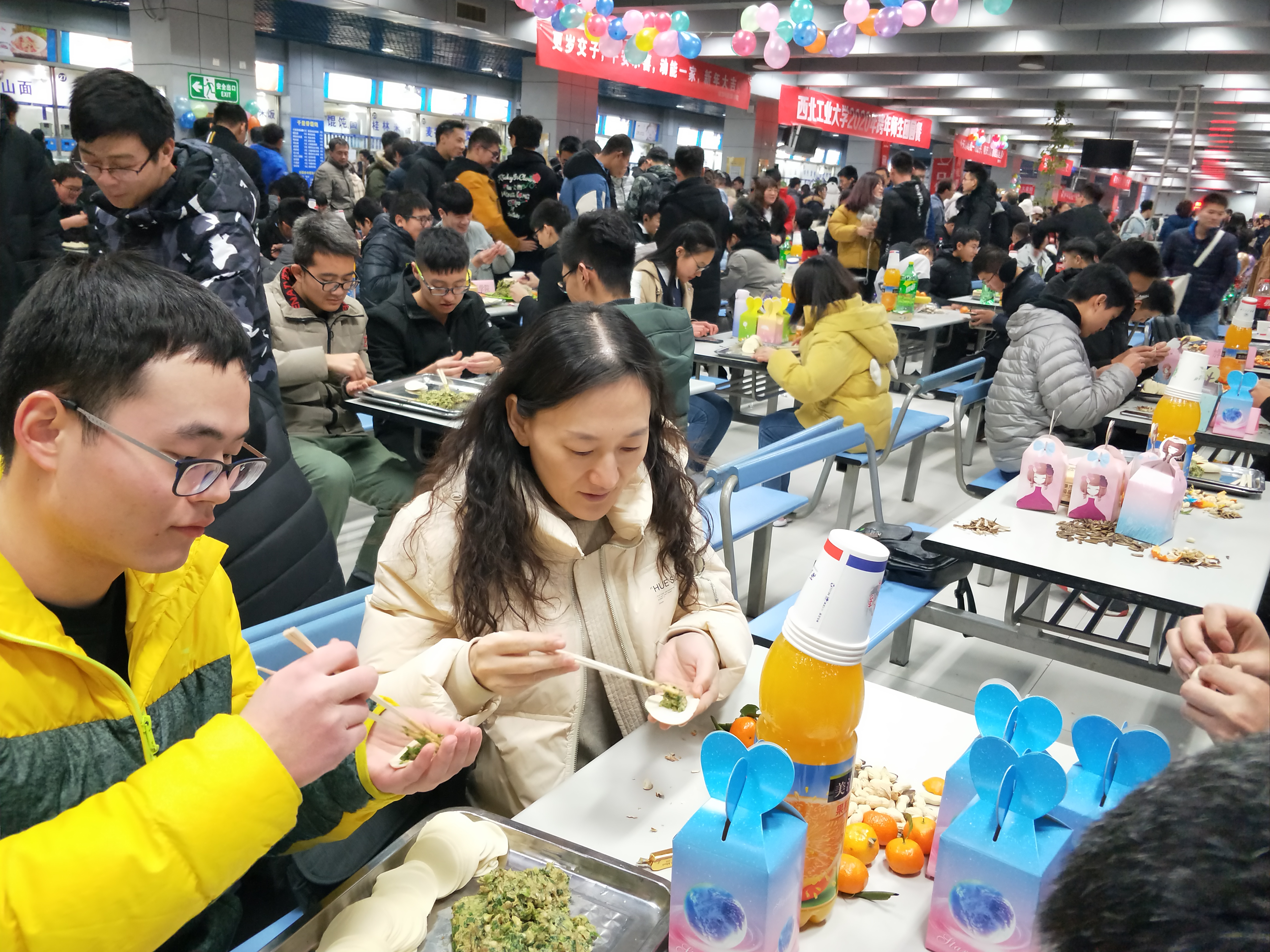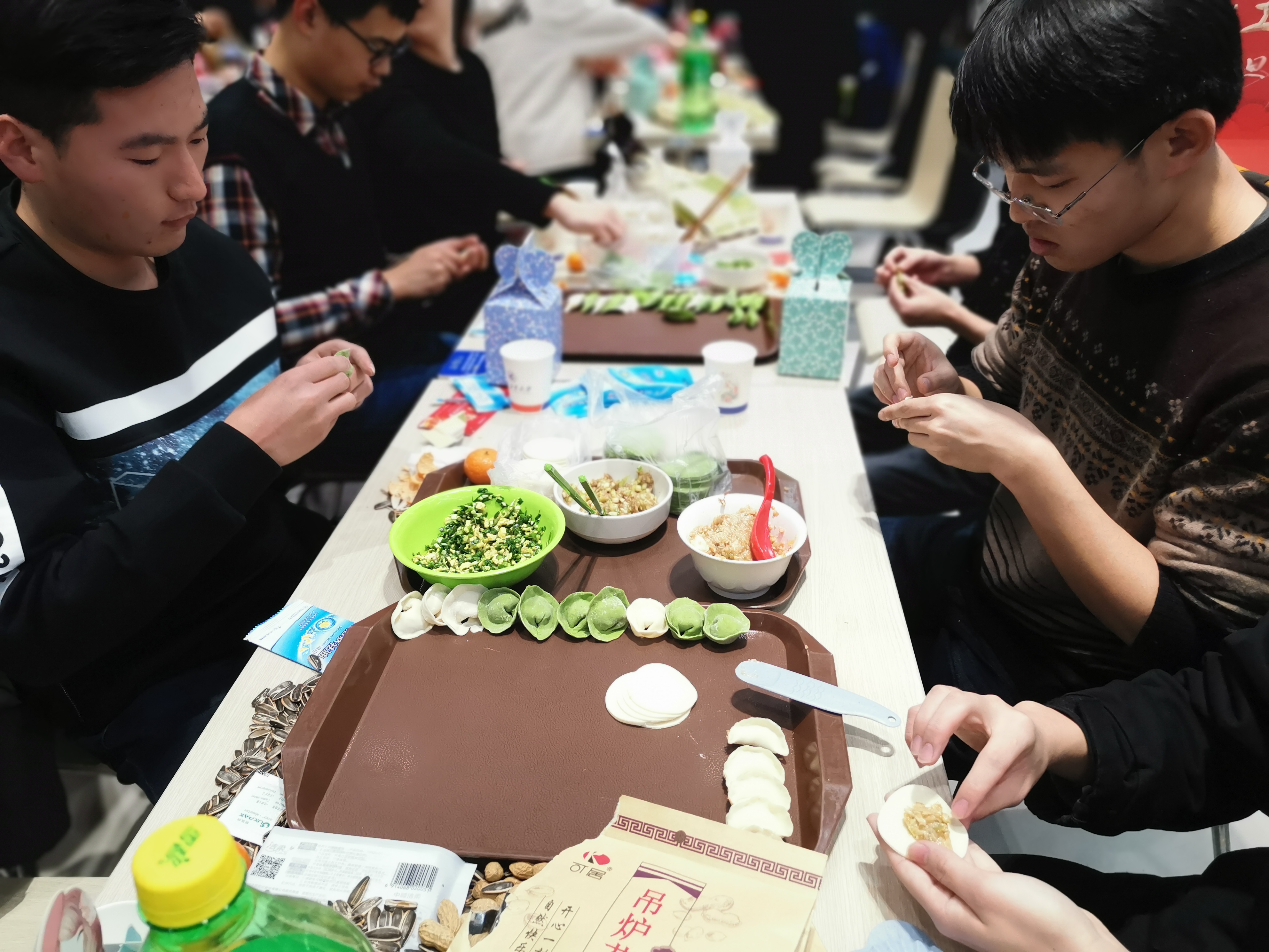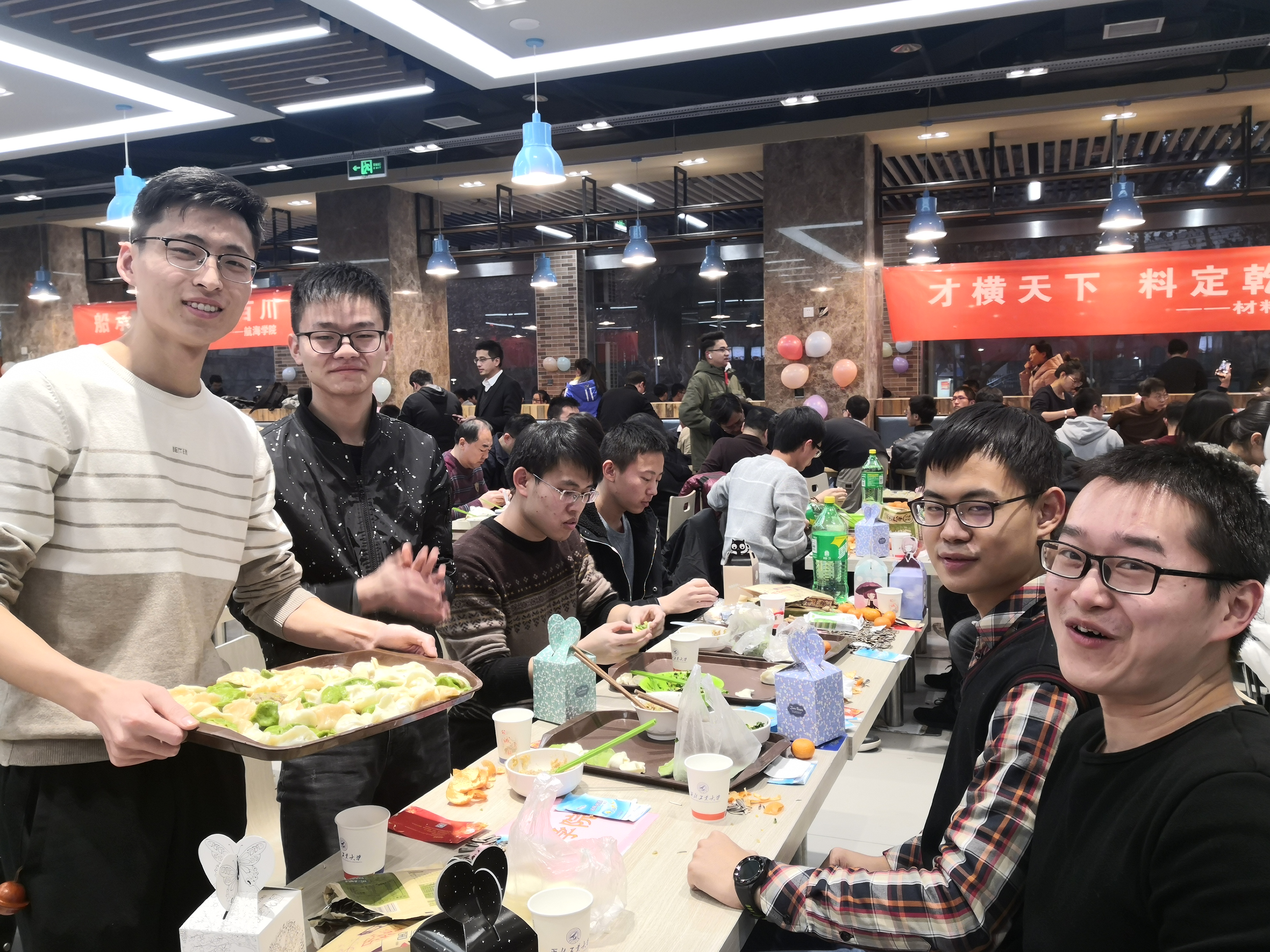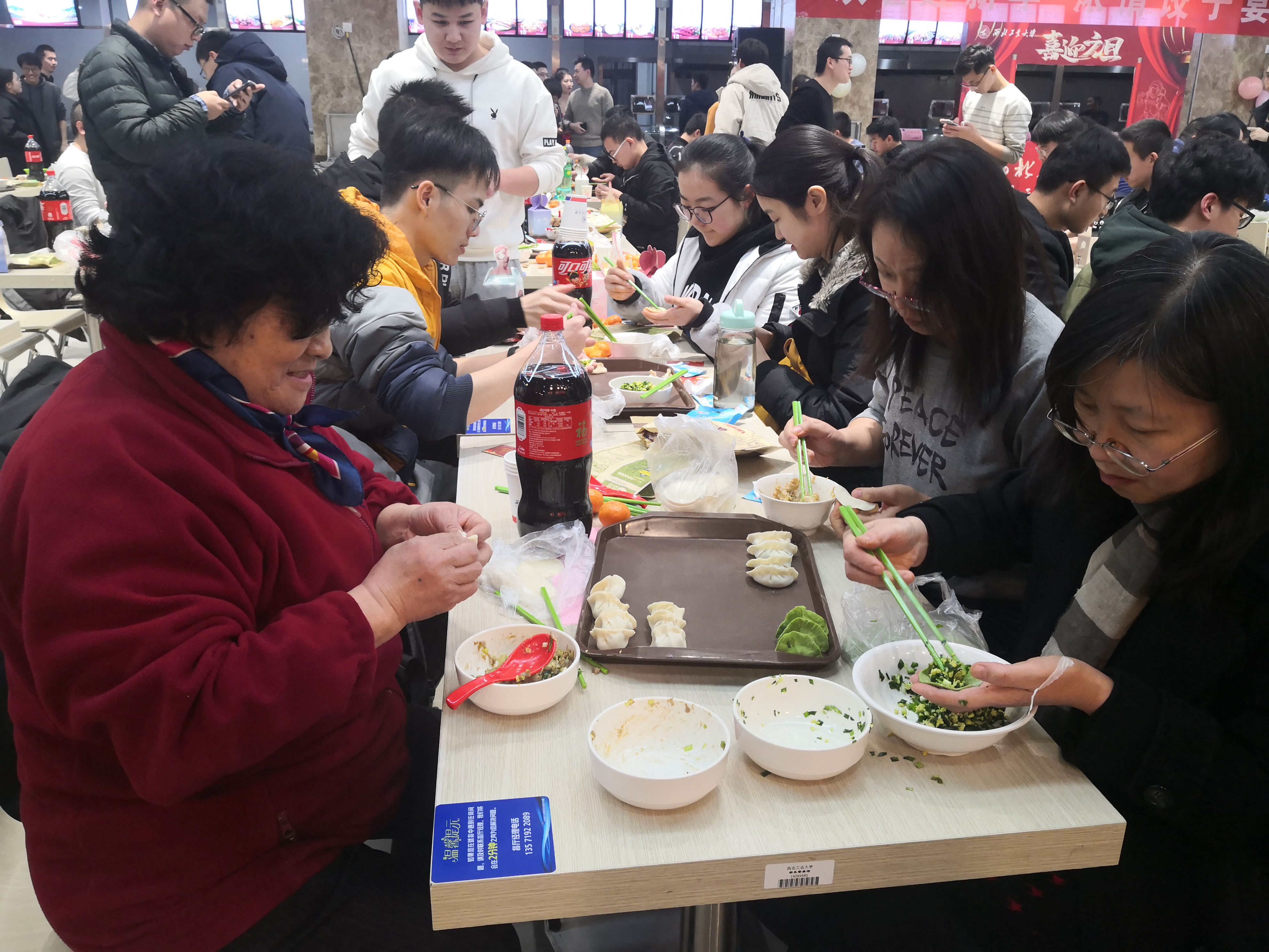 夜幕降临,万众瞩目的跨年活动拉开帷幕。跨年团圆餐在两校区学生餐厅拉开帷幕,永利集团官网师生领取了饺子皮和饺子馅后,围坐在一起,开始了自己的包饺子之旅。永利集团官网院长唐硕、党委副书记(主持工作)岳晓奎,副院长秦飞、张科,党委副书记常威威、王强以及班主任、辅导员、导师代表、学院办公室老师等来到现场,与同学们一起包饺子、唠家常,和同学们聊着这一年的学习与收获,表达对同学们新年的期许与祝愿。随着热气腾腾的饺子一盘接一盘地端上桌,同学们一齐举杯,共贺新年,现场气氛其乐融融。学校校领导与永利集团官网的同学们亲切交谈,表达学校对同学们的关心与爱护,了解学生心中所思所想,并对同学们送上新年祝福。同学们发挥奇思妙想,激情创作,各种形状的饺子诞生。有的饺子中包裹着硬币和花生,吃到的同学收获了大家真诚的祝福。团圆餐其乐融融,节日氛围浓厚。最后,在“包饺子大赛”、“倒念词语比赛”等形式多样的活动中,包饺子活动圆满结束。