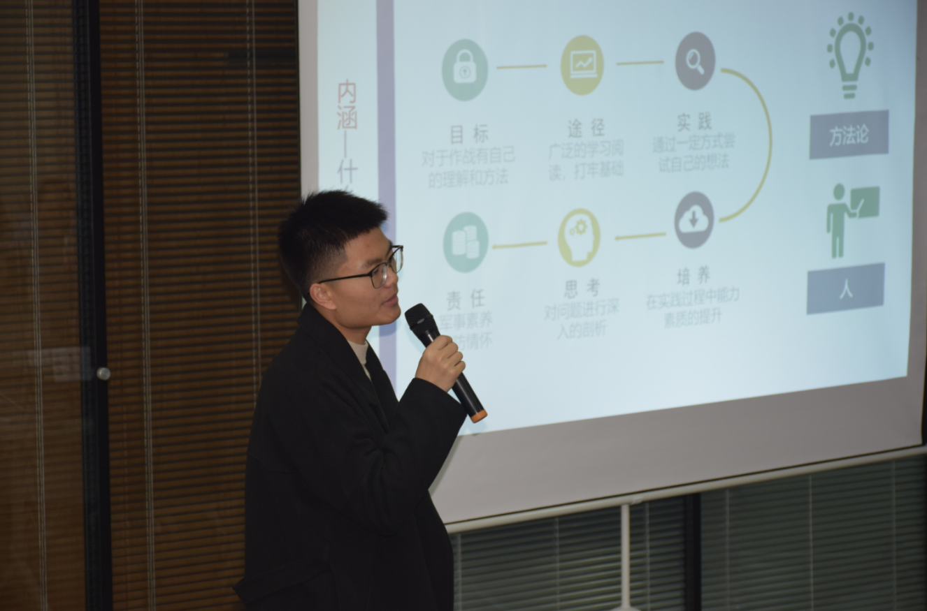 首先,刘双喜以“小棋子,大谋略”为为主题,分别从“兵棋推演的发展、兵棋推演系列活动、兵棋+文化建设”三个方面为大家进行科学详细的讲解,深入浅出的向大家介绍了兵棋推演的内涵,激发起大家浓郁的兴趣。