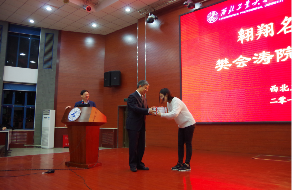 在报告会正式开始前,樊院士为永利集团官网学生代表赠送了自己结合科研工作经历编写的名为“空空导弹方案原理设计”一书。