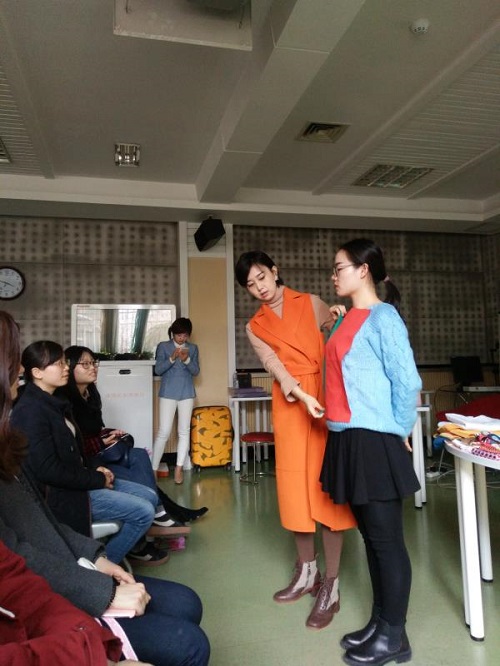 之后,优雅的史老师用两个小时,就女生在化妆技巧、着装搭配以及职场礼仪等方面做了详细的讲解。现场有不少女生成为幸运儿,被史老师亲自指导如何穿搭,如何找到最适合自己的风格。讲座中,史老师强调了个人素质修养与审美水平在日后职场道路上的重要作用,提醒聪慧的工大女生要从细节着手重视形象塑造。